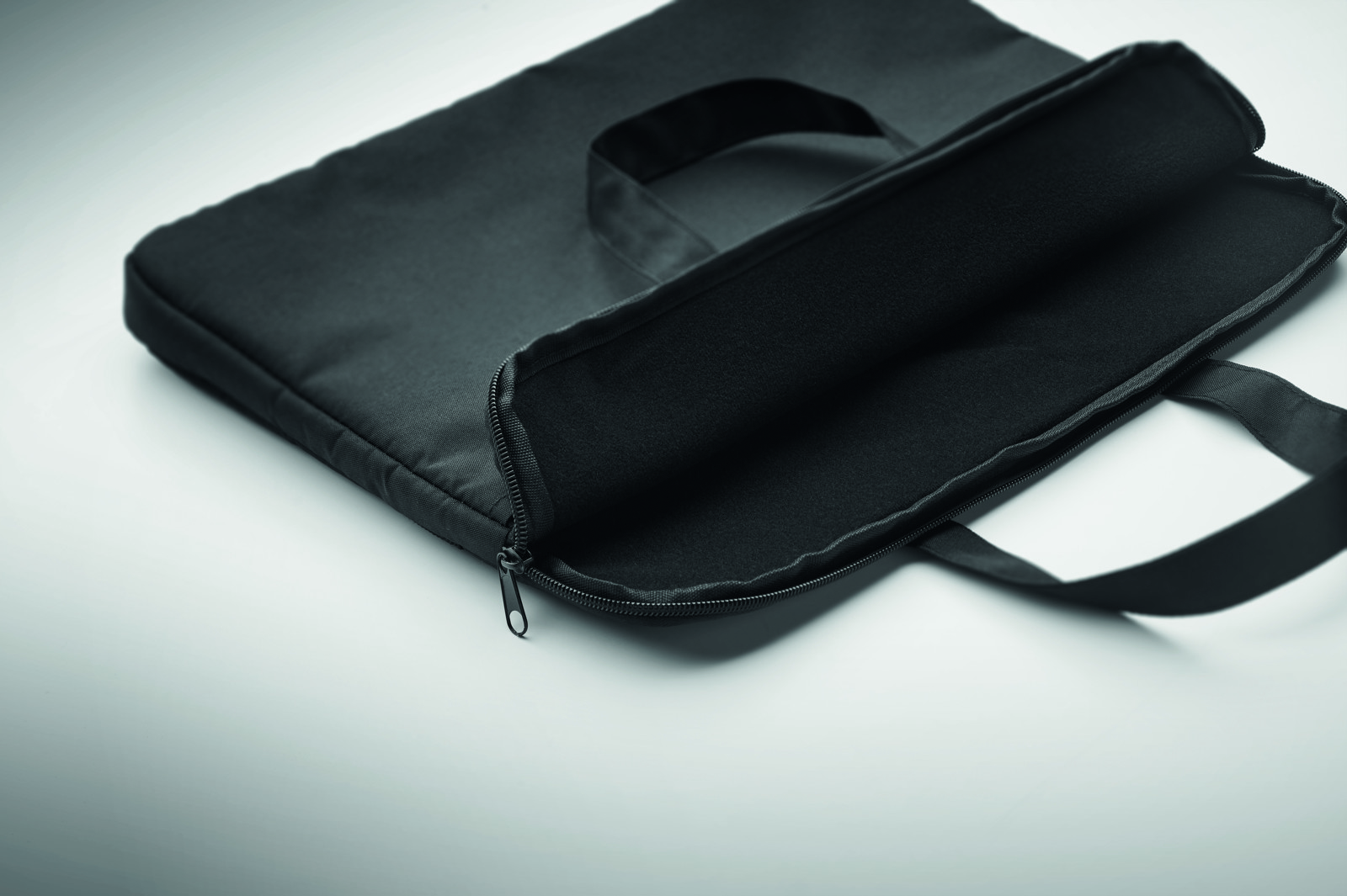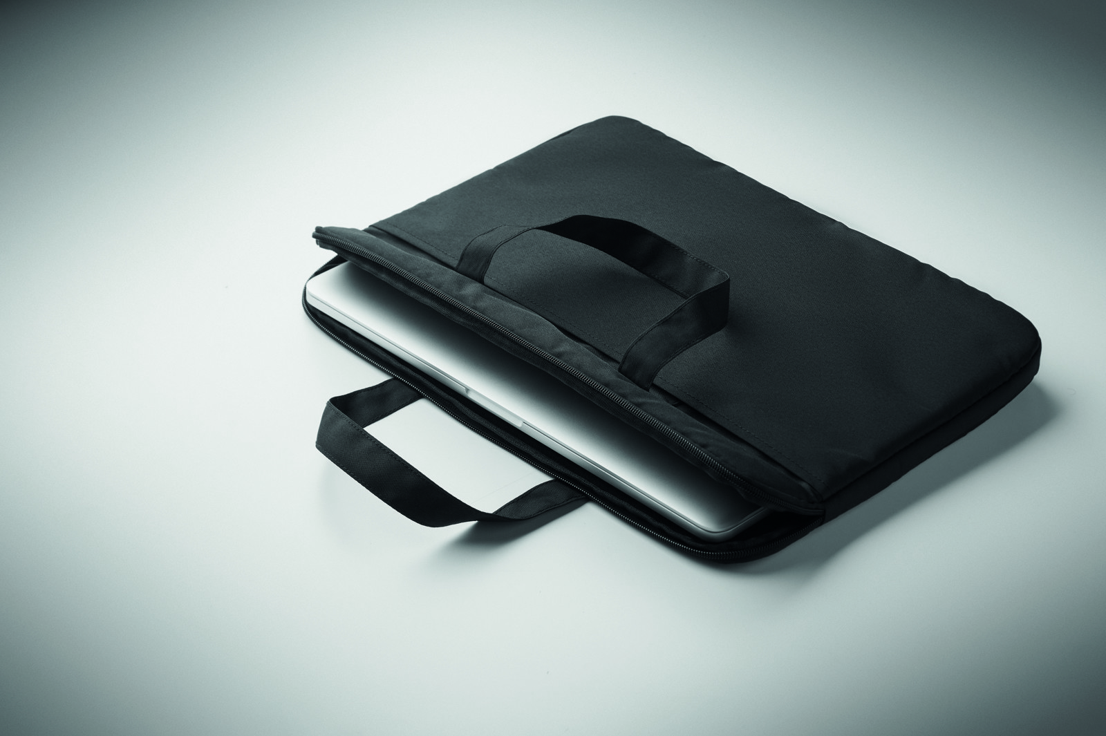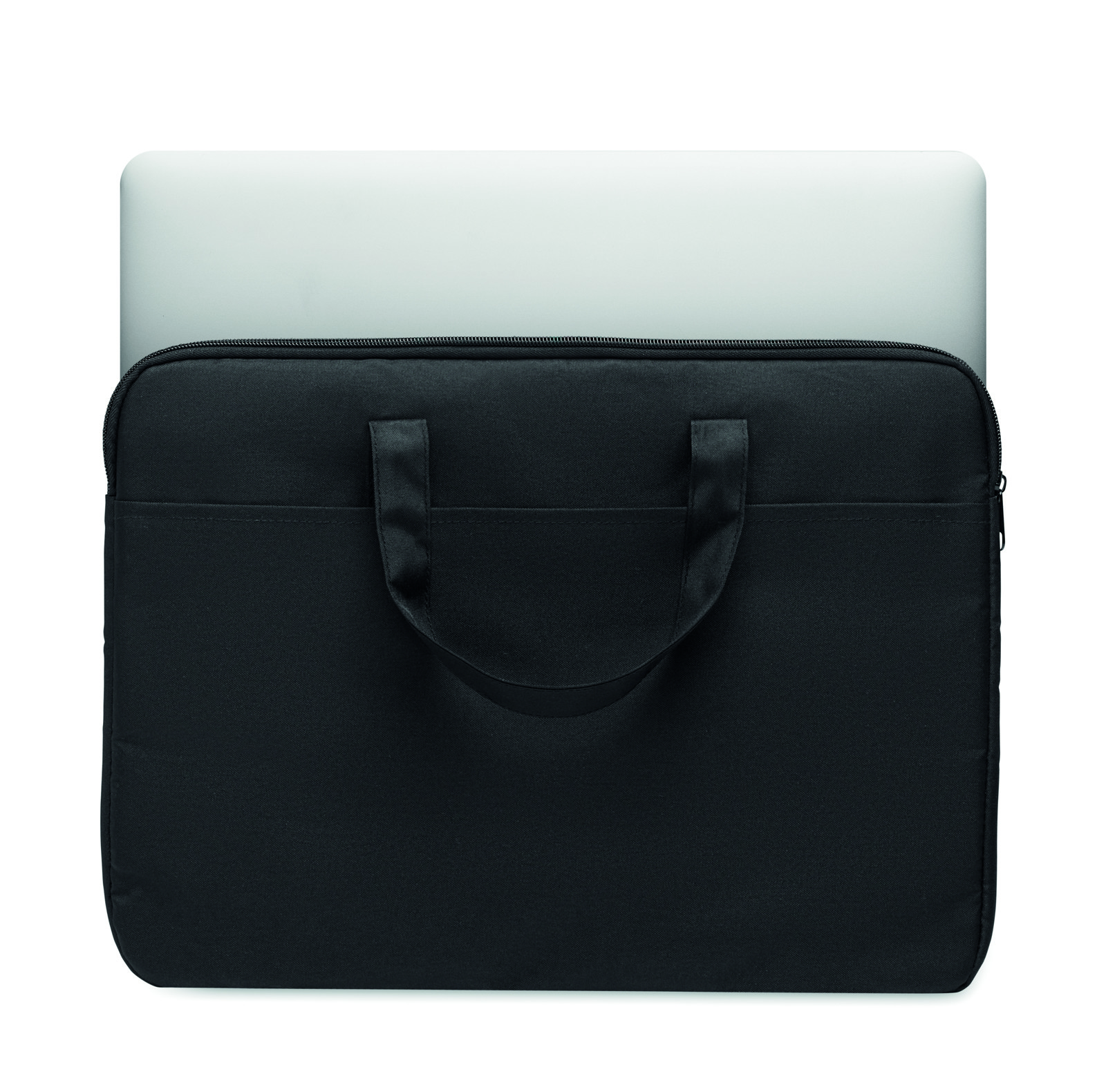 15 inch laptop bag in 300D RPET polyester with handles and luggage pass-through strap.