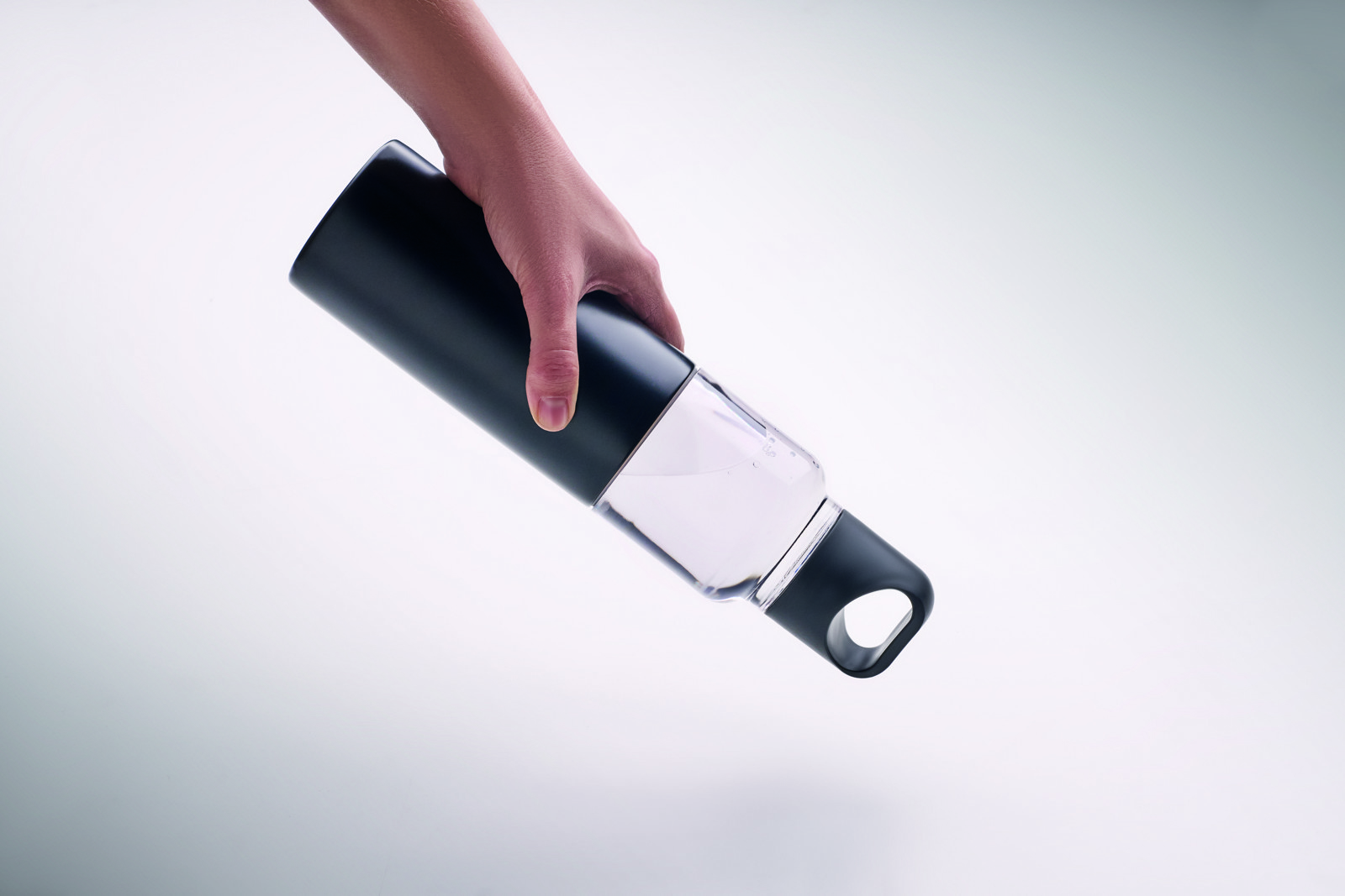 Refillable 2 in 1 bottle in Tritan and double wall tumbler part in recycled stainless steel (90 % recycled and 10% stainless steel). 2 lids in PP material. Capacity total 610 ml, tumbler 350 ml.