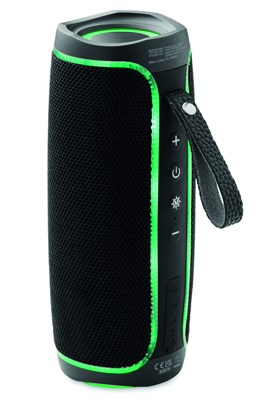2x5W LED wireless Speaker IPX4 splash proof and LED changing colours light with 1800 mAh battery.