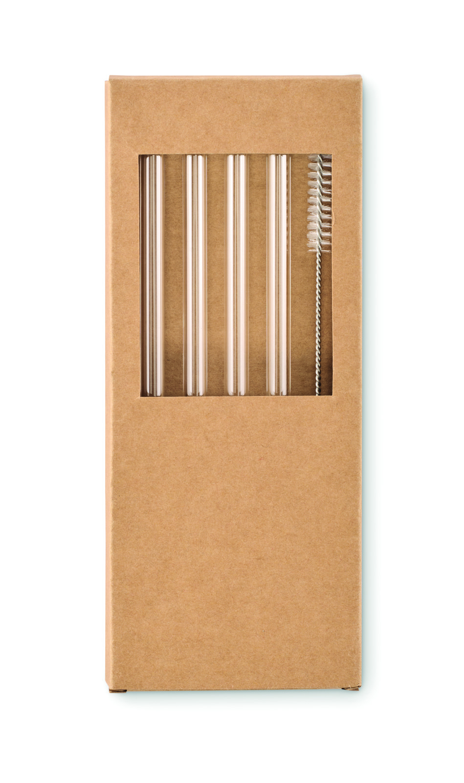 Pack of 4 reusable straws in high borosilicate glass with 1 cleaning brush.