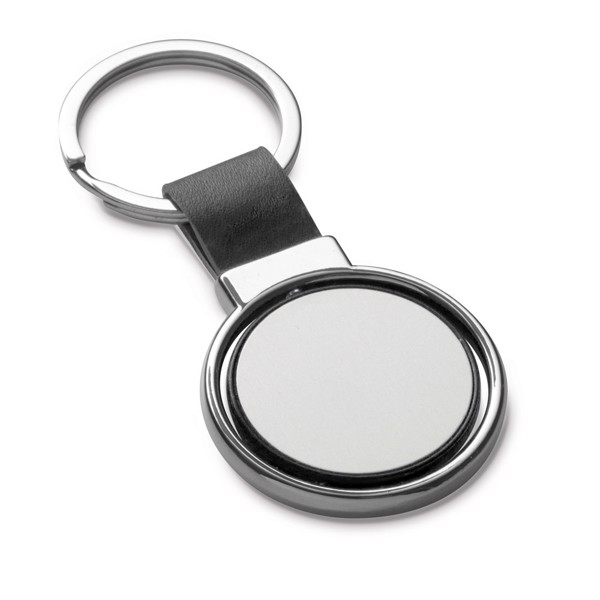 Metal and PU keyring suitable for customisation by doming. Supplied in a kraft paper pouch. Ring: ø 32 mm | Product: 60 x 39 x 5 mm | Total: 85 x 39 x 5 mm | Bag:100 x 55 mm