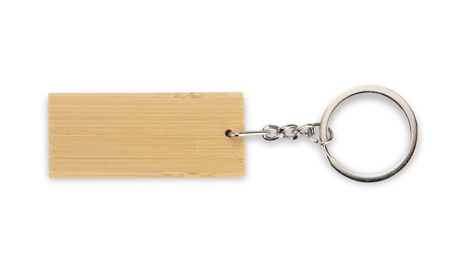 The ERO bamboo keyring is a lightweight and versatile promotional item, combining natural design with functionality.