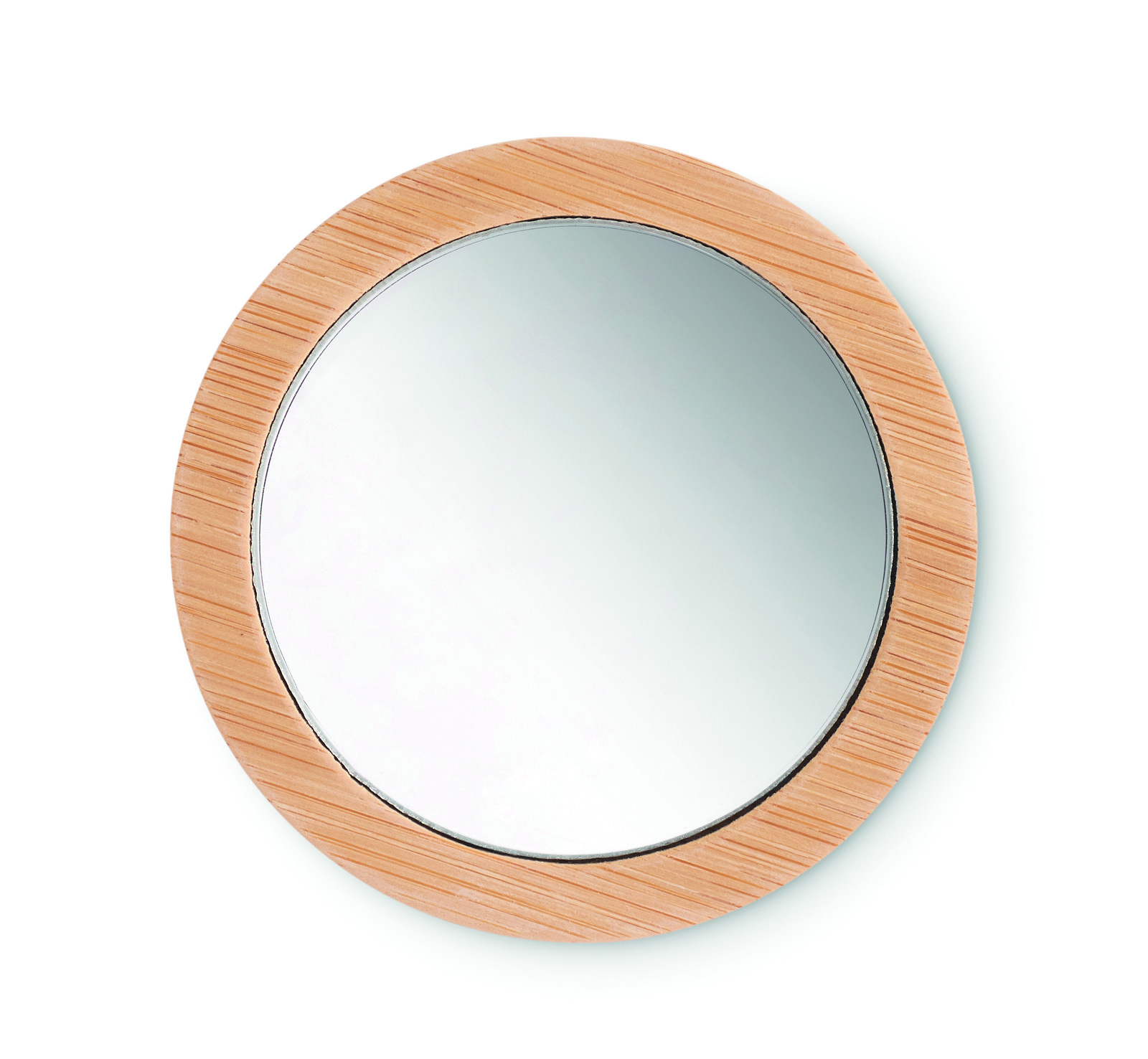 Rounded bamboo single-sided magnifying make up mirror. Presented in cotton drawcord pouch. Bamboois a natural product, there may be slightvariations in colour and size per item, which can affect the finaldecoration outcome. The mirror has a magnifying effect on it. FSC®-certified | FSC 100%, N5.7, FSC-C213206