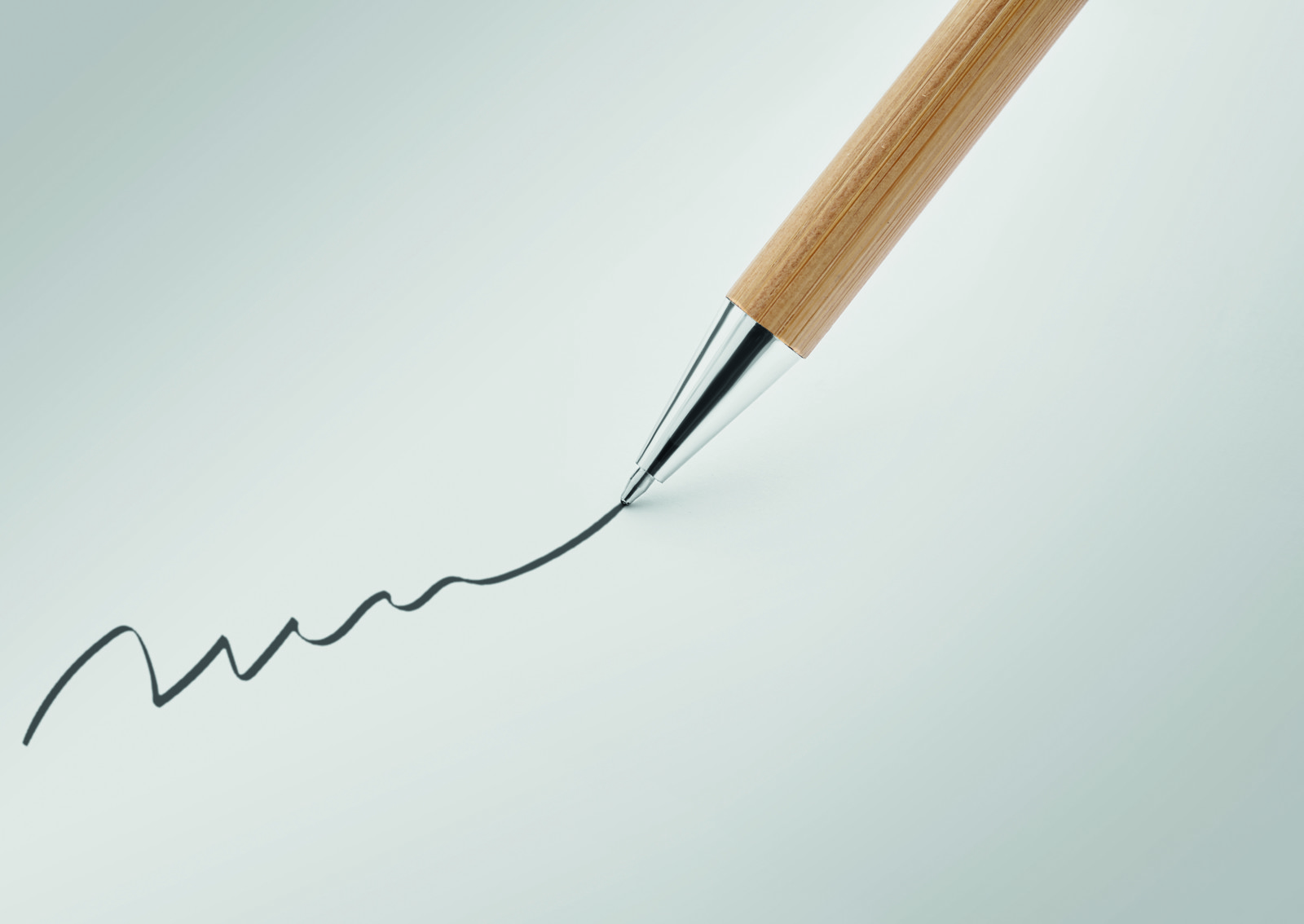 Twist ball pen in bamboo with metal fitting. Blue ink. Bamboo is a natural product, there may be slight variations in colour and size per item, which can affect the final decoration outcome. FSC®-certified | FSC 100%, N5.7, FSC-C213206