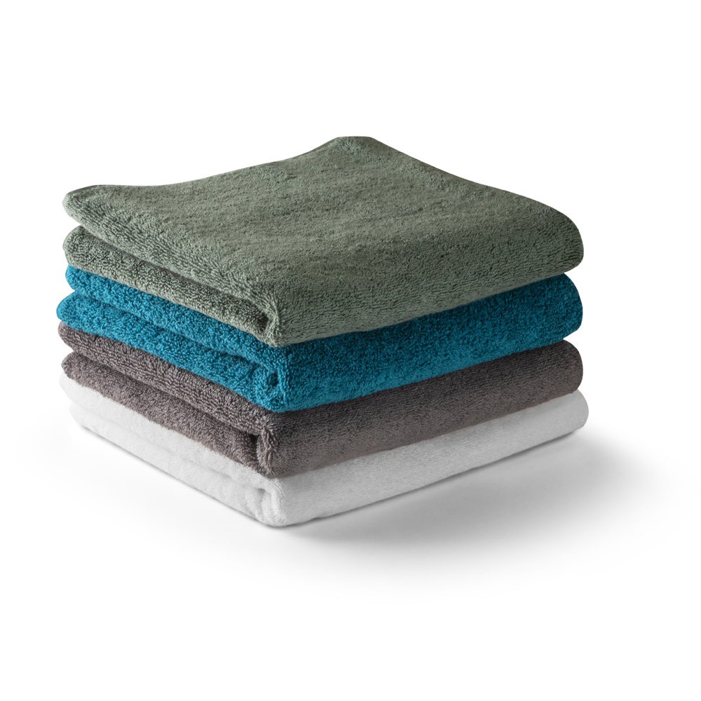 Bath towel in cotton (82%) and recycled cotton (18%) (500 g/m²). Made in Europe. 1400 x 700 mm
