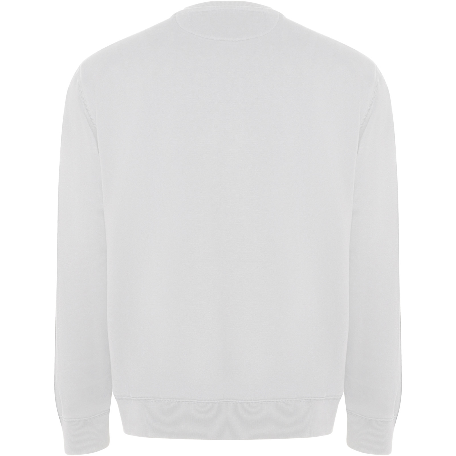 Unisex sweater in organic combed cotton and recycled polyester. Collar, cuffs and hem in 2x1 ribbed fabric. Decorative overlocked seams in shoulders, armholes, collar, cuffs and hem. Half moon seam on inner back collar. Removable label. Individual recycled packing. The model is 190 cm and is wearing size L.