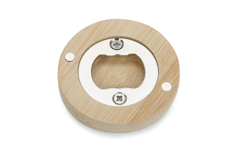 Practical bottle opener made of ecological material - bamboo. The magnets on the bottom allow it to be attached to metal parts, such as the refrigerator door, thanks to which the opener is easily available whenever you need it. The bottle opening part is made of durable stainless steel.