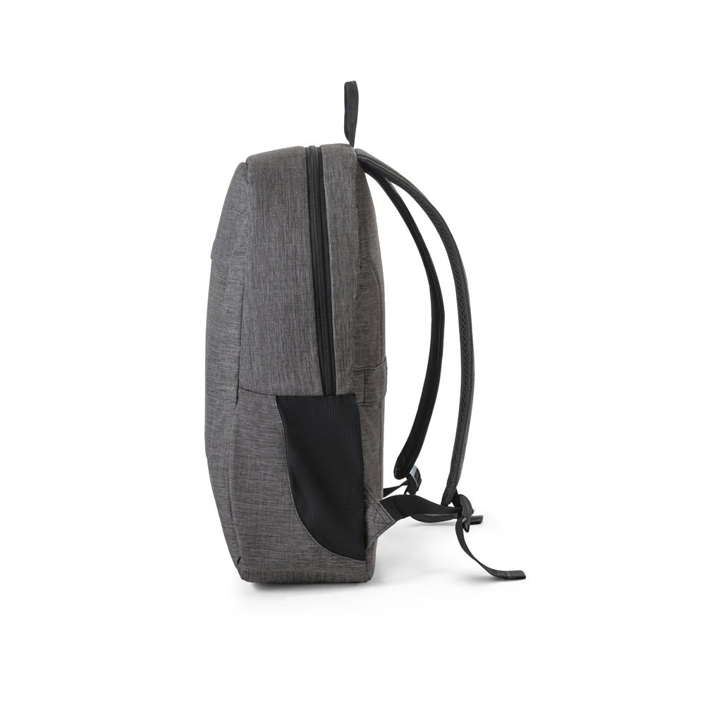 Laptop backpack, perfect for your professional or academic routine. Carry everything you need to be productive throughout your day. Outer material: high-density 300D recycled polyesterInner material: 210D recycled polyesterLaptop/tablet pocket: 15'6“/10'1”Capacity (L): 18Compartments: 1 main compartmentExterior pockets: 2 front zippered pockets and 2 side pockets with elastic meshBack panel: padded with trolley strap 300 x 450 x 140 mm