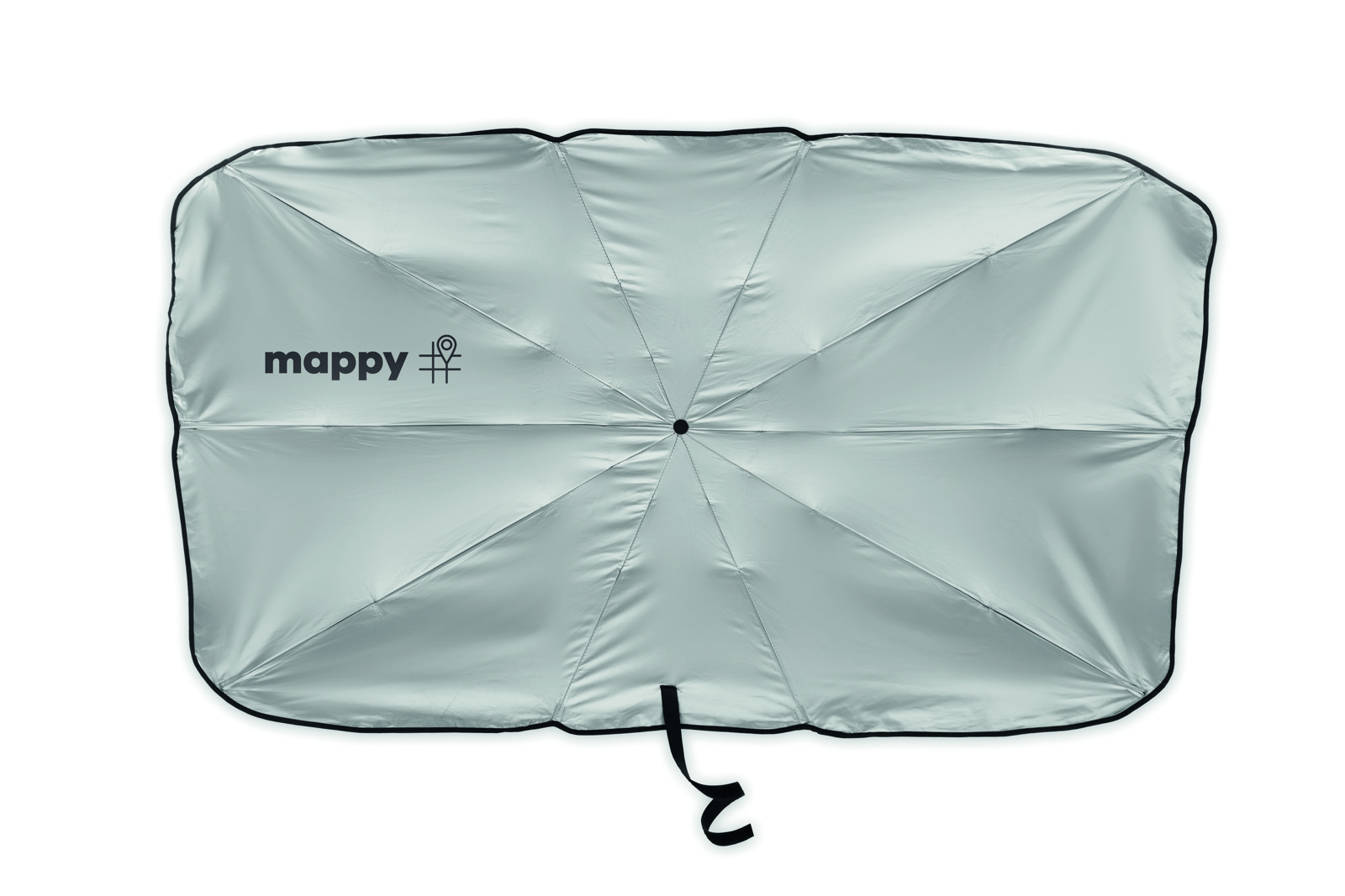 Windshield sun shade car umbrella in 190T pongee with 1 side silver lining. Manual open/close.