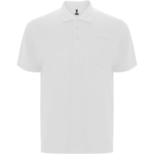 Short-sleeve polo shirt with pocket on left chest. Collar and cuffs in 1x1 ribbed fabric with detail. 3-button placket. Reinforced covered seams in collar. Removable label. Anti-pilling treatment.