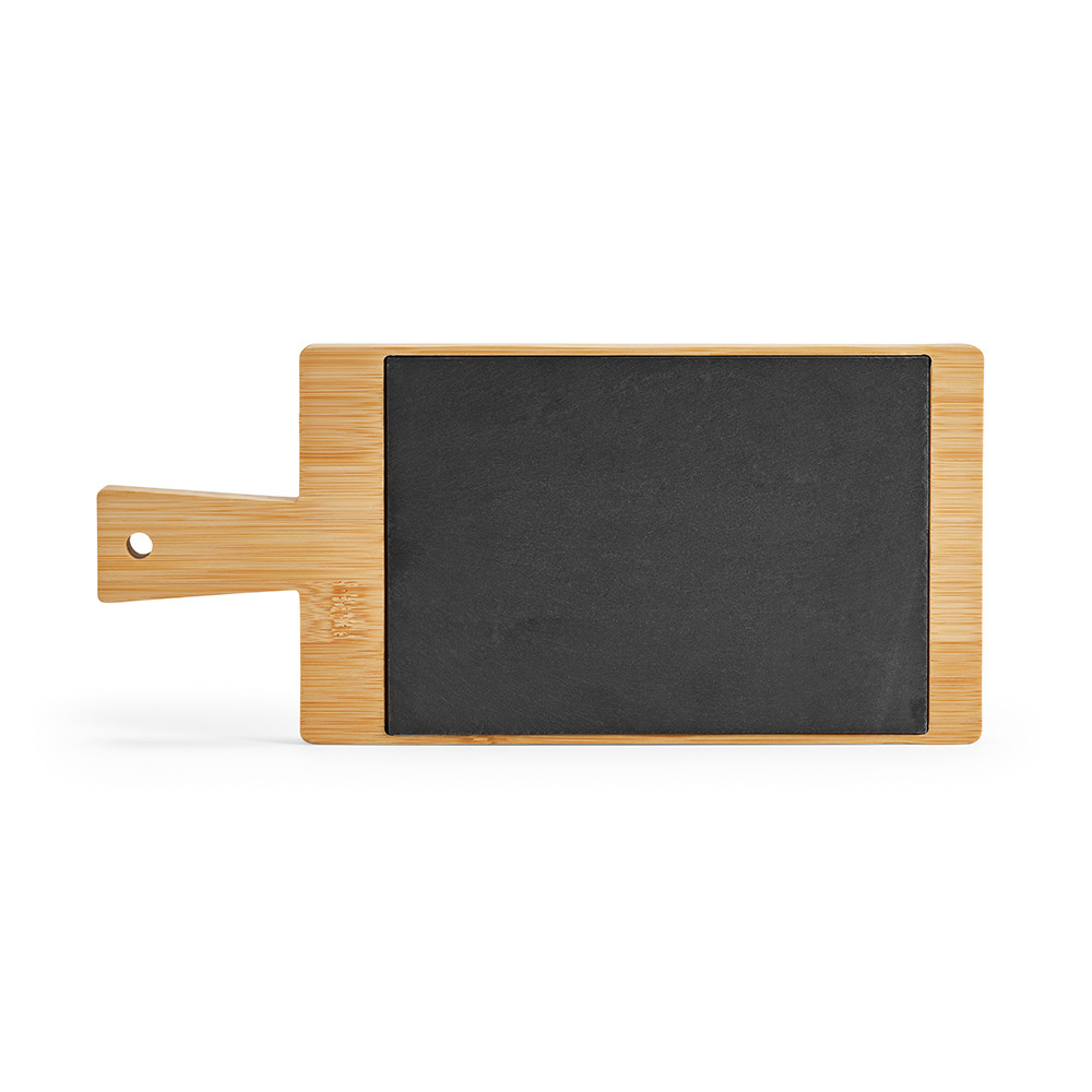 Claudel Board measuring 15 x 33 x 2cm, this board of bamboo and slate features a handle and can be a centrepiece of gatherings. Includes two pieces of chalk so you can decorate it. Let this board be your companion, inspiring culinary adventures and creating memories that last a lifetime. Packed inside an individual kraft box.