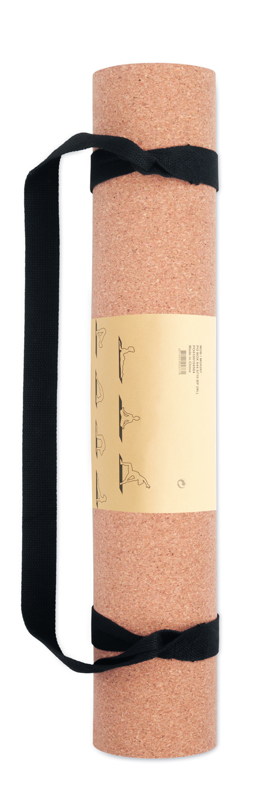 Yoga exercise mat made of cork and TPE material presented with paper wrap with instructions. Thickness 0,4cm. Including a cotton exercise rope/strap holder. Cork is a natural material, due to its structural nature and surface porosity the final print result per item may have deviations.