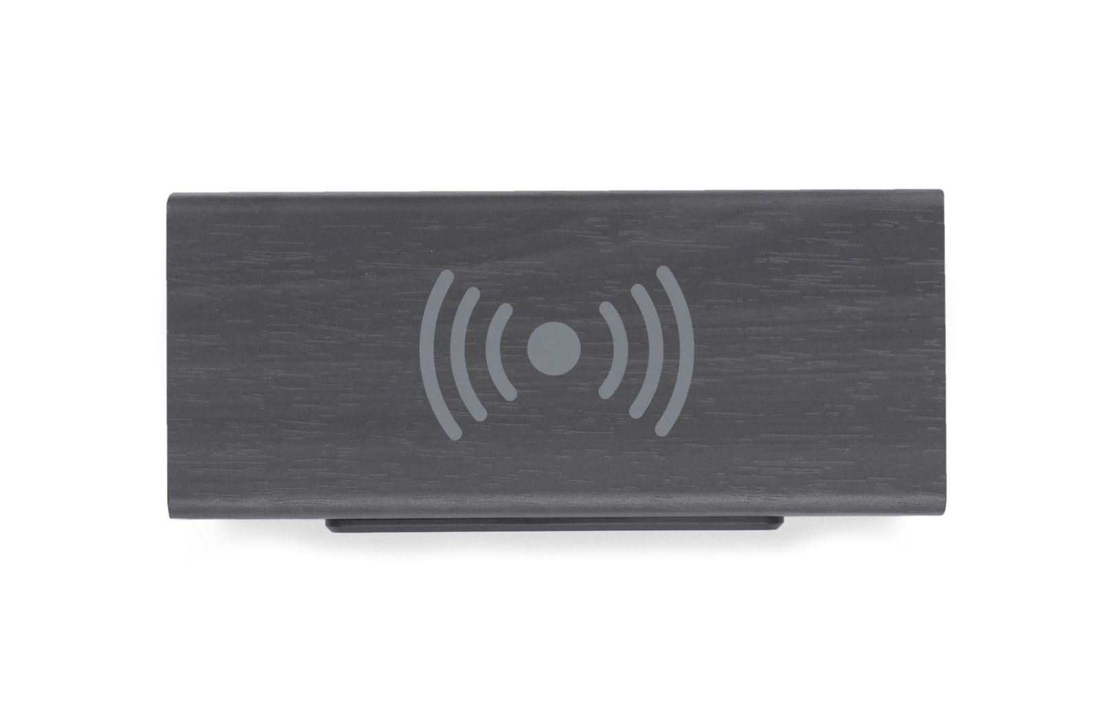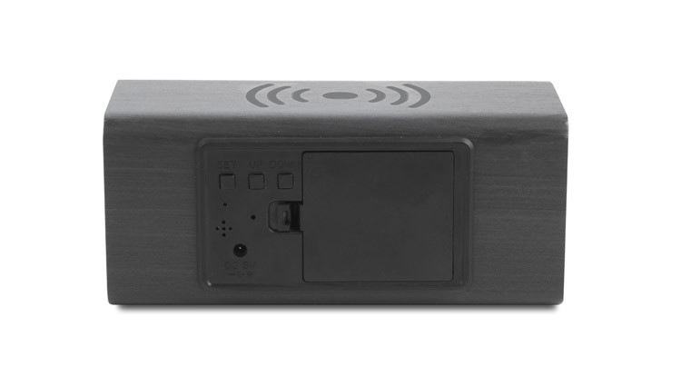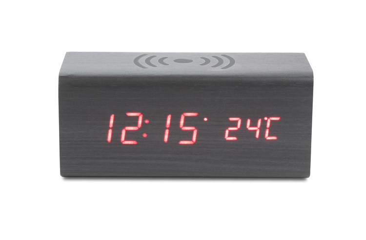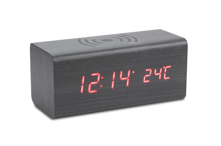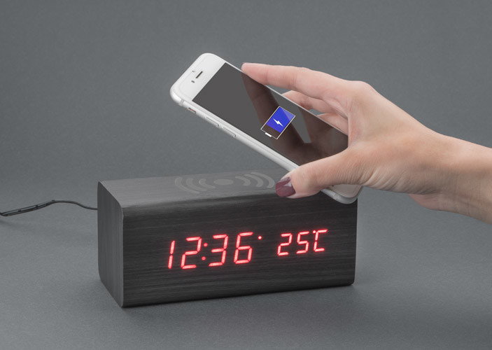 CORNELL clock combines digital clock in a stylish housing with induction charger. The gadget not only looks great on your desk, but it is also very useful. The set includes power supply cable. Clock’s features include calendar, alarm clock and temperature. NOTE: Please wait approx. 1 min after connecting the device in order to stabilize the electromagnetic field. In order to use inductive charging, connect the device with the supplied cable (only the clock works on battery power supply).