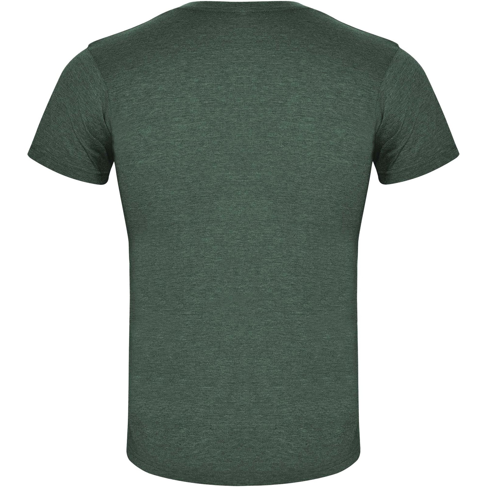 Short-sleeve t-shirt with heathered effect. 1x1 ribbed crew neck with interior reinforced covered seams. Tubular fabric. Removable label.