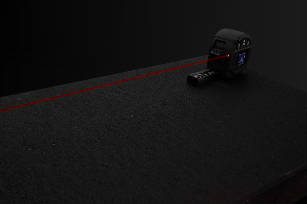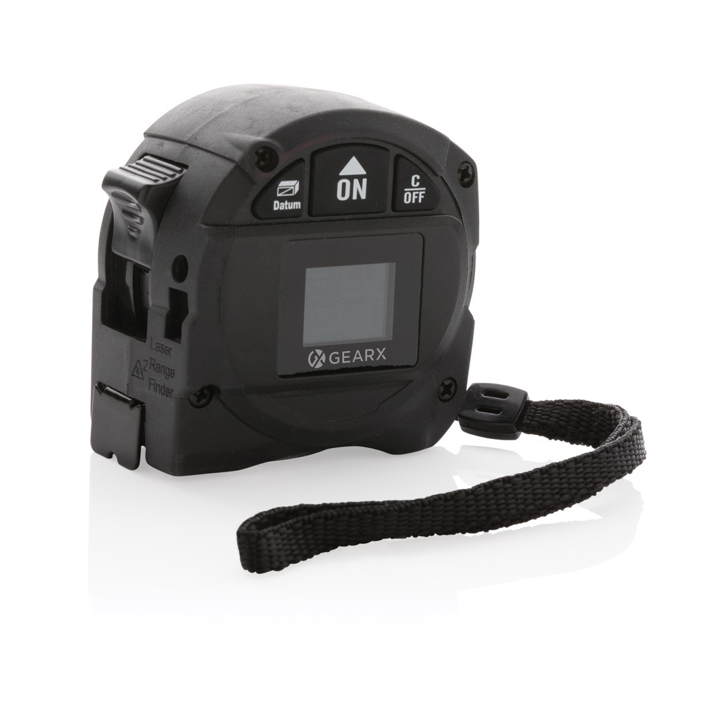 Combine function, durability and performance with this premium laser measuring tape. The shock proof rubberised casing has an integrated 30M laser distance measurer. It also has a durable 5M carbon tape. The blade is black coloured and double sided. With integrated LCD screen to quickly read the details and integrated re-chargeable battery. Packed in luxury gift box.