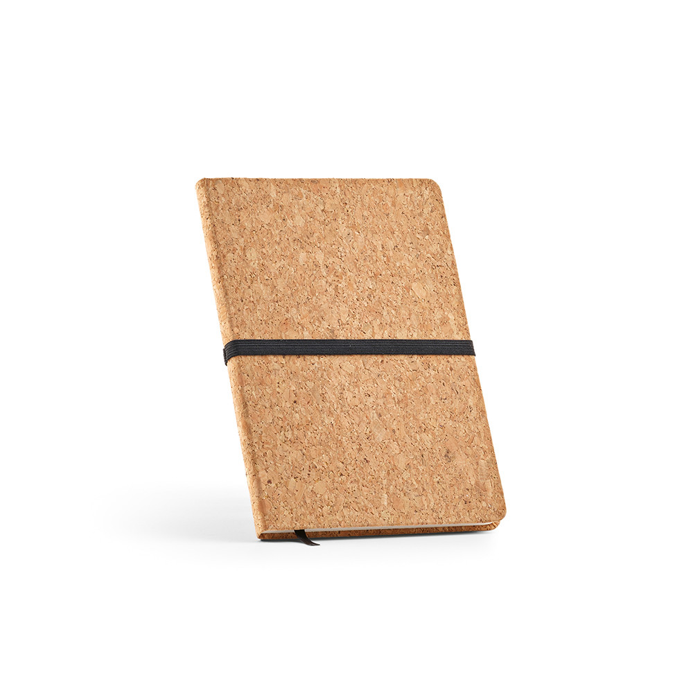 Goethe A5 cork cover notebook. It contains 196 recycled 70 gsm dotted pages, an area to write down the date and page number, and closes with a horizontal elastic. Also features a page marker ribbon. Supplied in an individual kraft sleeve.