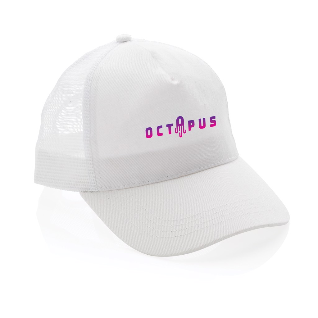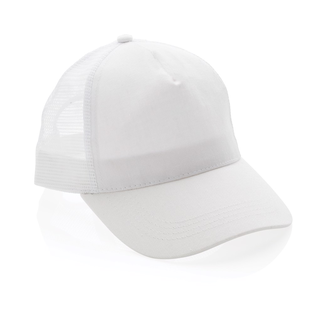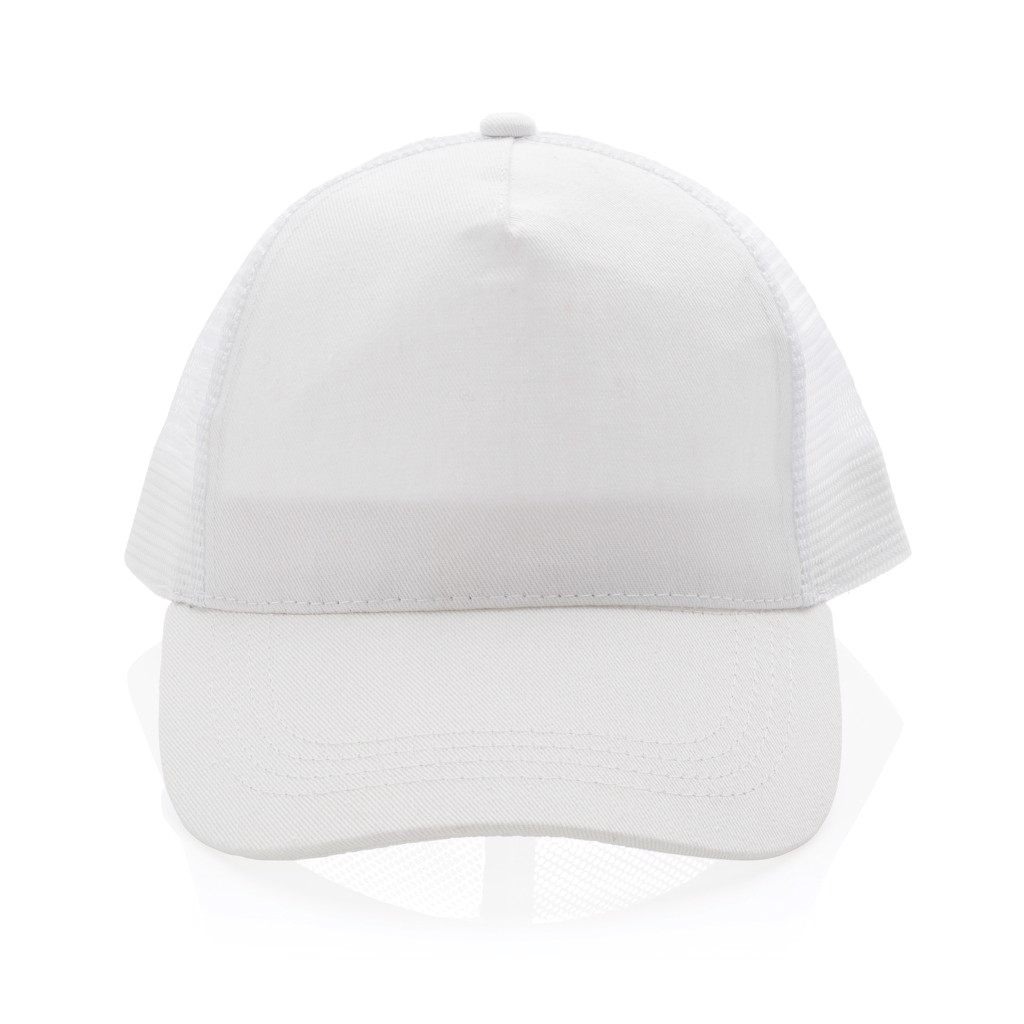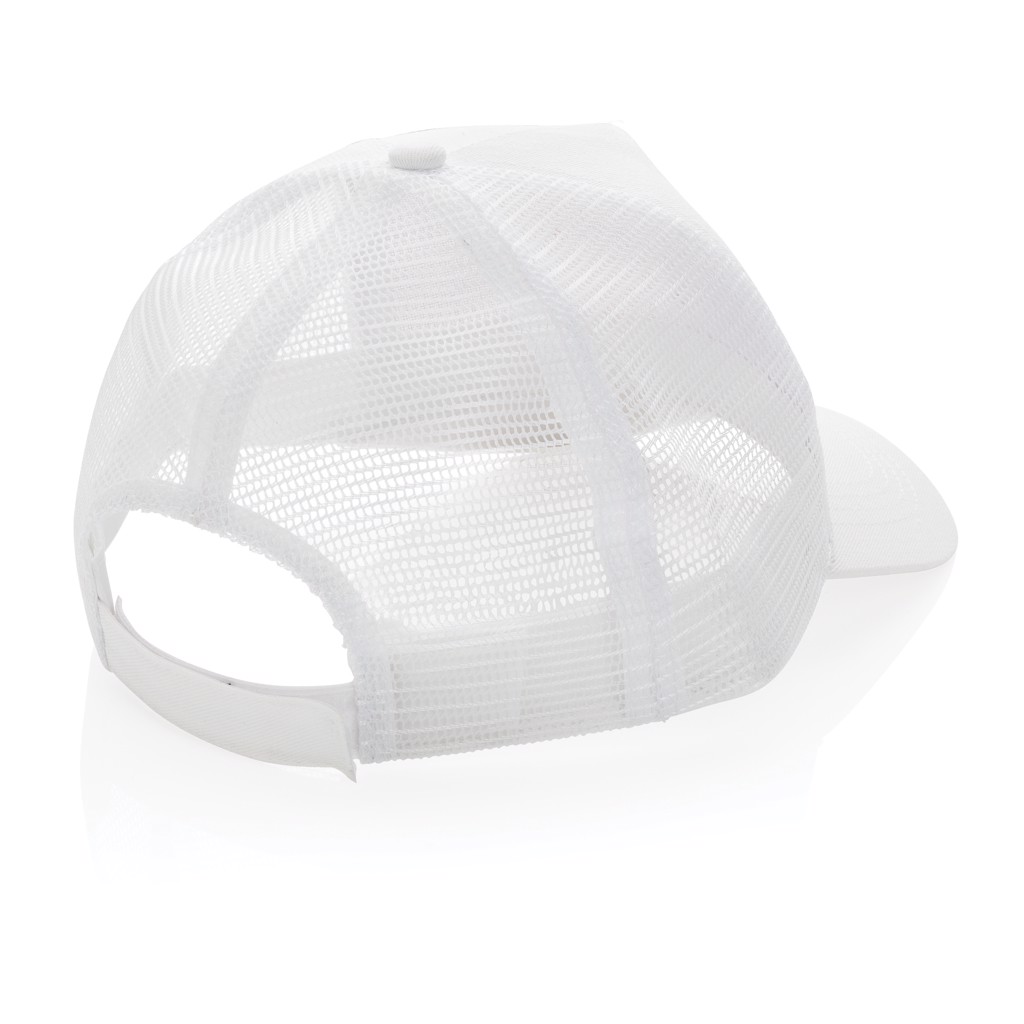Impact AWARE™ Brushed rcotton 5 panel trucker cap 190gr - White