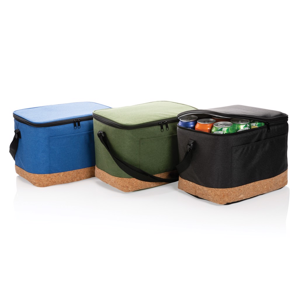 This Impact AWARE™ XL RPET two tone cooler bag with cork detail fits your favourite on-the-go meals with ease. Constructed with soft yet durable insulation and wide mouth opening, you can easily pack everything from your favourite drinks and snacks to a larger lunch. The cooler bag fits up to 12 cans. The exterior is made with two tone 50% recycled polyester, lining is PEVA and stylish cork detail around the edge. The exterior is with AWARE™ tracer that validates the genuine use of recycled materials. Each bag has reused 7.1 0.5L PET bottles. 2% of proceeds of eachImpact product sold will be donated to Water.org.