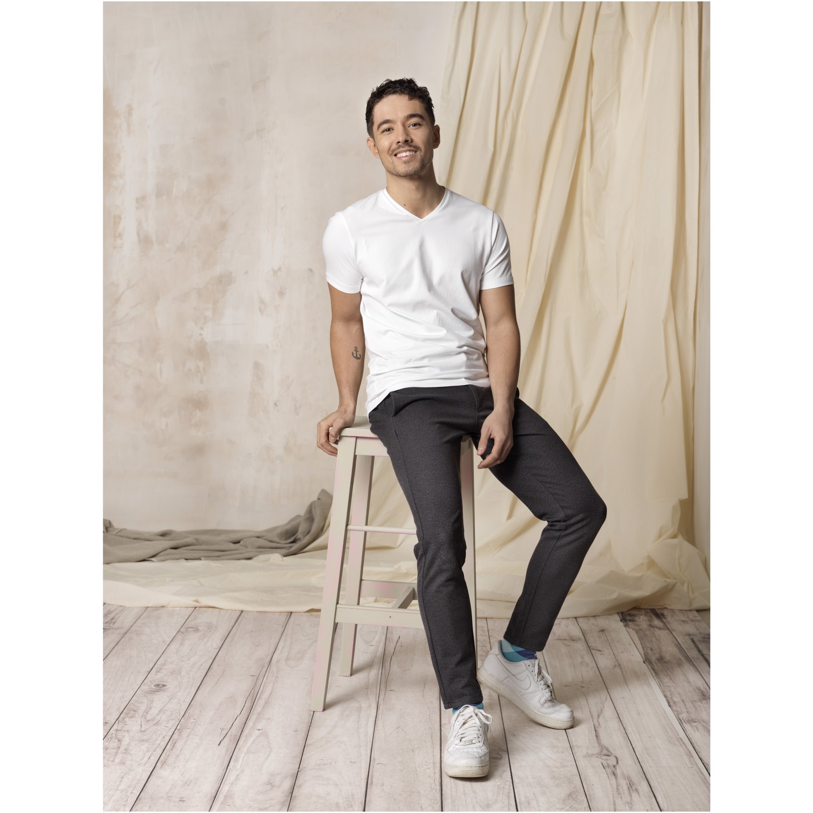 The Kawartha short sleeve men's organic V-neck t-shirt is a stylish and sustainable choice. Made from 95% organic cotton, with a fabric weight of 200 g/m², this t-shirt is not only good for the environment but also soft and comfortable to wear. The 5% elastane ensures a soft and stretchy fit. With its V-neck and short sleeves, this t-shirt is both sustainable and modern.