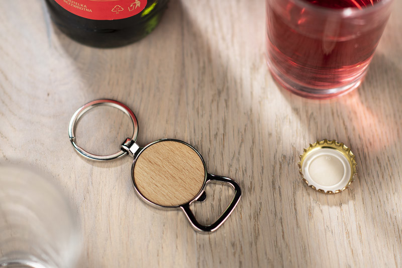 MILO combines the function of a keychain and a bottle opener. It is a functional gadget for everyday use. Made of metal and wood. Packed in a brown envelope.