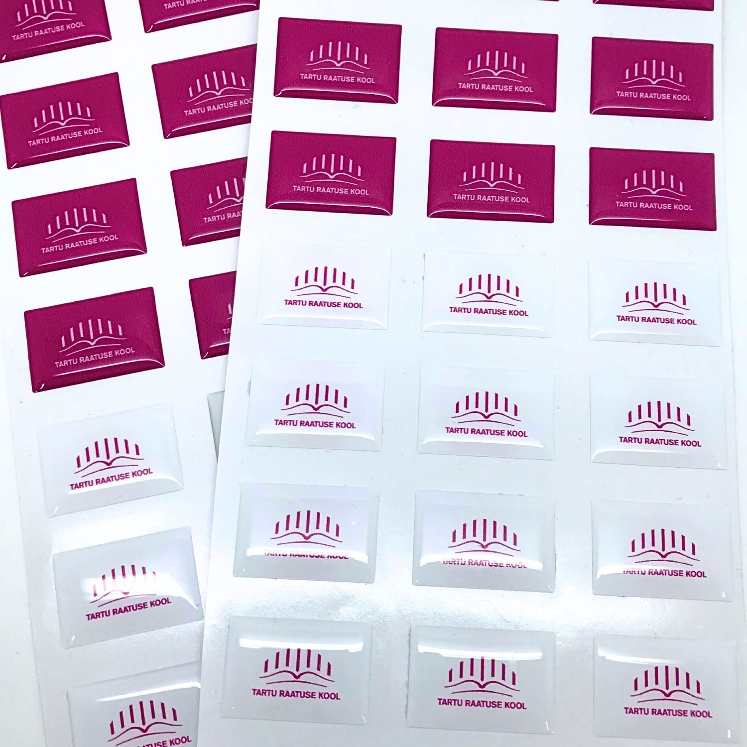 **Matt ja läikiv** Klassikaline valge kleebis, saadaval kas mati või läikiva pinnaga. Sobib suurepäraselt etikettideks, kleepsulehtedeks või jagamiseks messidel. Universaalne materjal, mis sobib hästi nii sisetingimustesse kui ka lühiajaliseks välistingimustes kasutamiseks. **Läbipaistev matt ja läikiv** Läbipaistev lahendus pindadele, kus soovid, et taust jääks osaliselt nähtavale – näiteks klaasile või pakenditele. **Veekindel õhukanalitega kleebismaterjal** Õhukanalid liimikihis muudavad paigaldamise lihtsaks ja mullivabaks. **Efektkleebised – läikiv ja matt kuldne, hologramm** Silmapaistvad ja dekoratiivsed materjalid, mis sobivad hästi kingitustele või erilise visuaalse efekti loomiseks. **Mullikleepsud** Kleebised, millele on peale valatud läbipaistev kuplikujuline epoksiidkiht, mis loob ruumilise ja läikiva 3D-efekti.