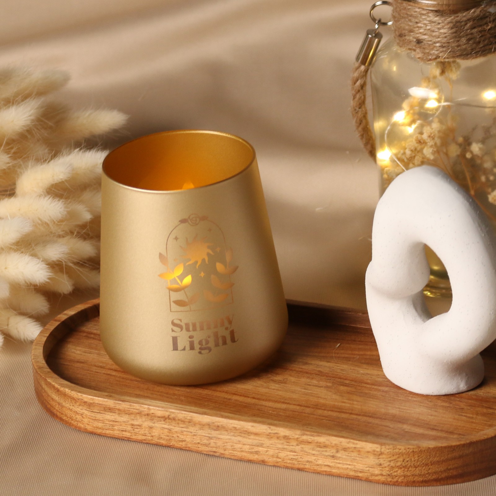 The combination of the modern form and the warmth of the lantern's light creates an amazing atmosphere that will work in many interiors. The use of colouring on the outer wall of the windlicht will allow it to fit in even better with the branding.