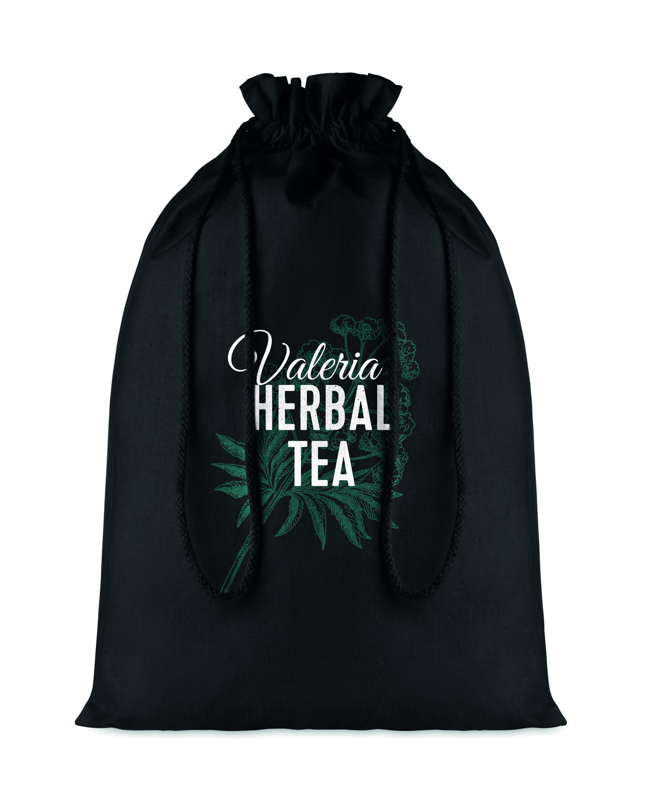 Large gift cotton draw cord bag. Size approx. 30 x 47cm. 105 gr/m². Produced under a certified standard for the use of harmful substances in textile.