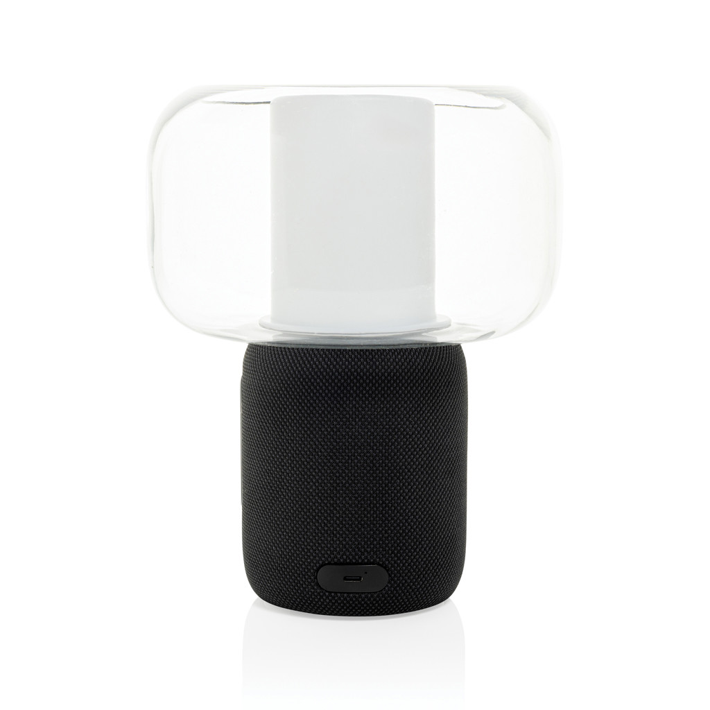 The Lux 10W RCS recycled speaker lamp combines modern design with high-quality audio and versatile lighting, making it a stylish addition to any space. Its sleek black body, made from RCS recycled ABS and PET, houses a powerful 10W speaker with BT 5.3 connectivity and a 2000 mAh rechargeable Li-ion battery. With an input of 5V 0.1–2A, the battery charges in just 4 hours and provides up to 7 hours of playtime at 50% volume. The lamp features 8 LEDs with cold, normal, and warm light modes, producing 32–38 lumens and operating for up to 3 hours. Additional features include a built-in microphone for hands-free calls and easy pairing. The included 30 cm RCS recycled TPE USB-C to USB-C cable ensures convenient charging. Made out of RCS certified recycled materials. RCS (Recycled Claim Standard) is a standard to verify the recycled content of a product throughout the whole supply chain. Total recycled content: 51 % based on total item weight. Item and accessories are PVC-free. FSC packaging.