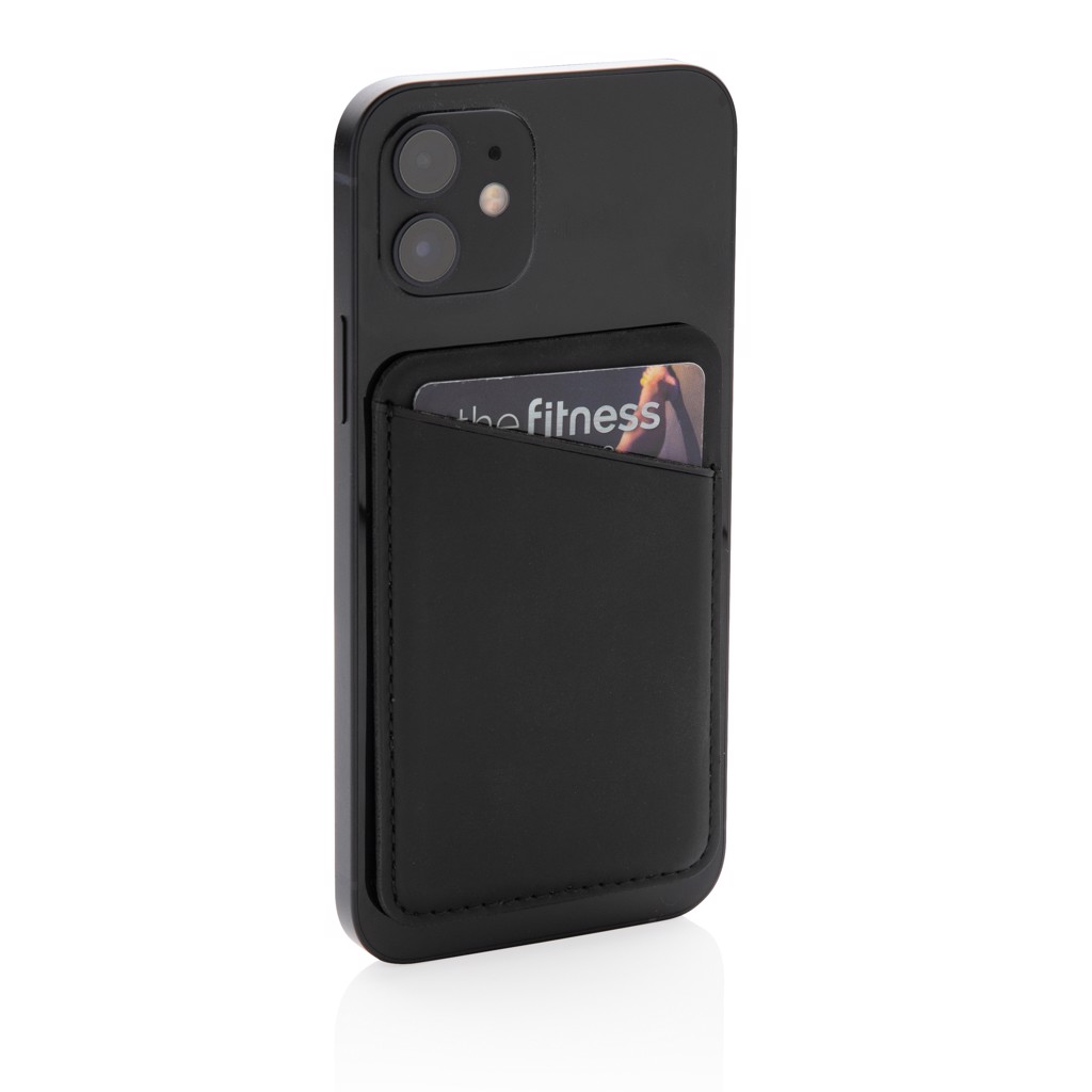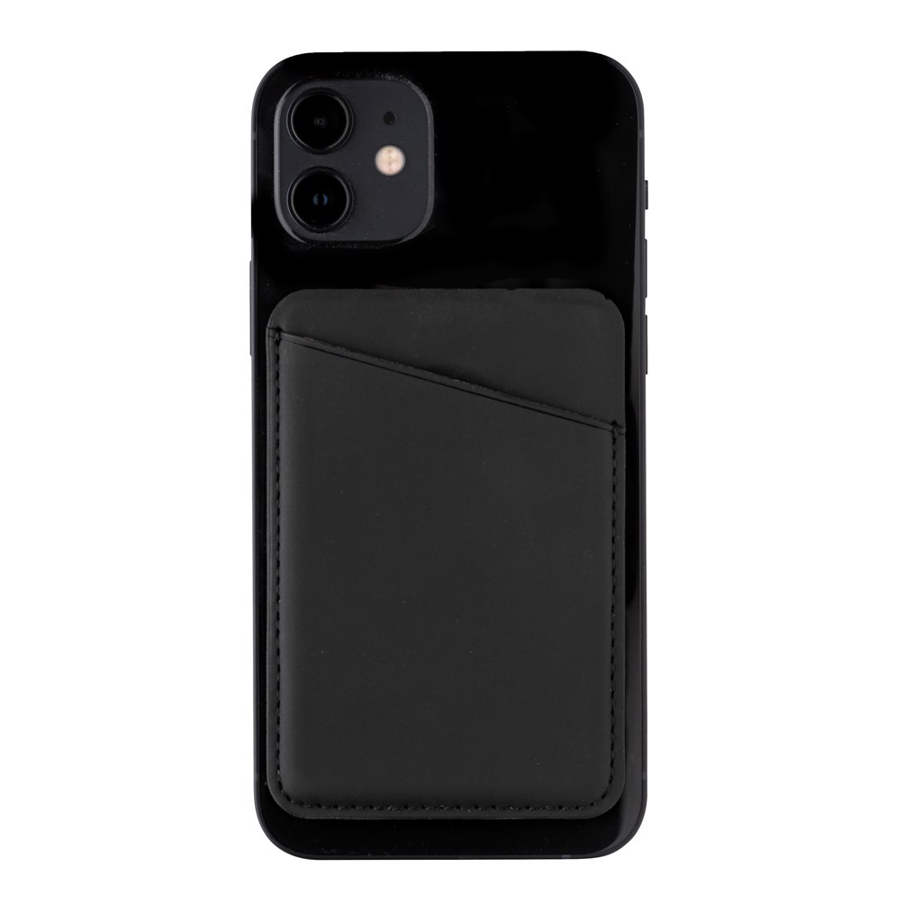 Snap on this stylish magnetic wallet on the back of your Iphone ( from iPhone12 and up) . The perfect way to keep your ID or credit card close at hand without having to take your whole wallet. Crafted from high quality PU. Supports up to two cards. With 12 high quality N52H heat resitant magnets integrated for perfect adhesion and alignment. PVC free.