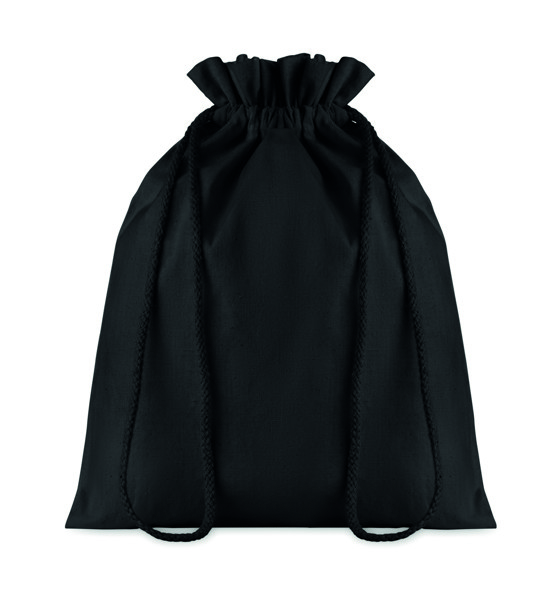 Medium gift cotton draw cord bag. Size approx. 25 x 32cm. 105 gr/m². Produced under a certified standard for the use of harmful substances in textile.
