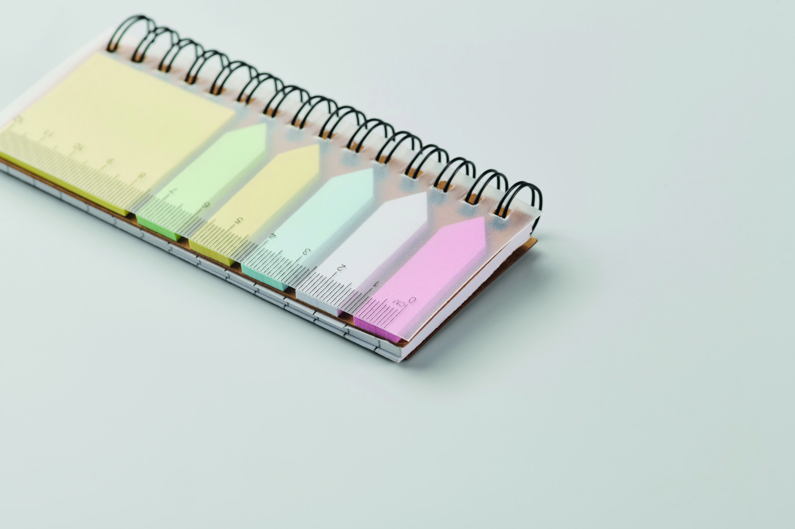 Memo pad in PP with sticky notes and 5 assorted colour page markers in recycled paper. Ring binder.