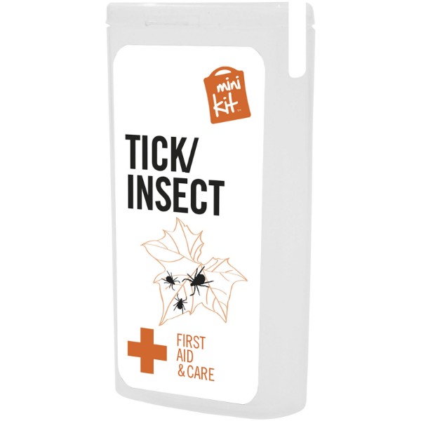 A compact kit which allows for easy storage in your bag or pocket - meaning you are always prepared! Contents: 1 tick remover blue, 1 insect repellent wipes, 2 skin cleansing swabs, 10 wash proof plasters. All of the first aid and care products within the kit meet all applicable EU regulations. Price includes full colour print.