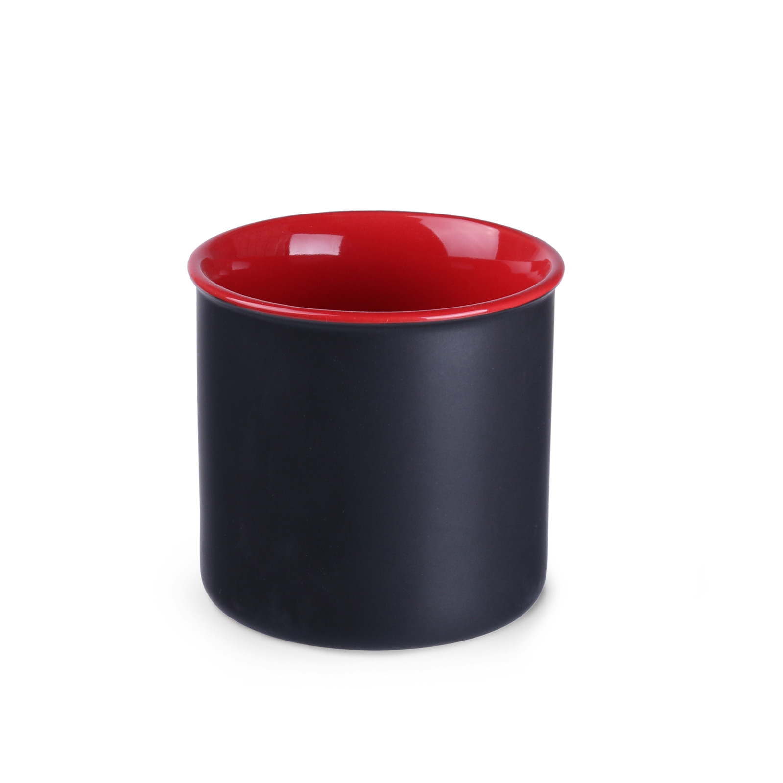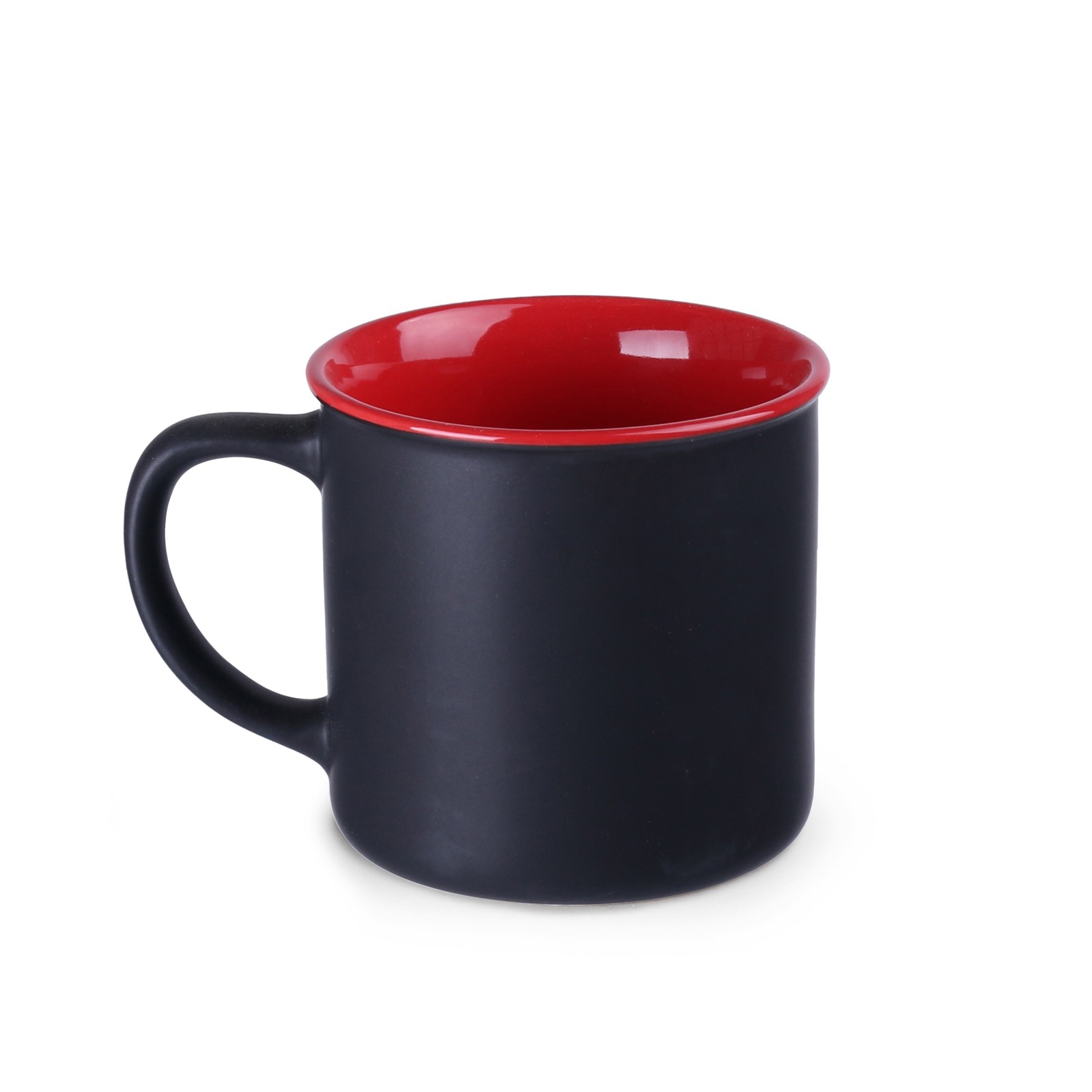 A fashionable minimalist mug with an elegant matte black surface. It comes in several colorful interior options. It has great printing possibilities. It will be a perfect addition to stylish interiors.