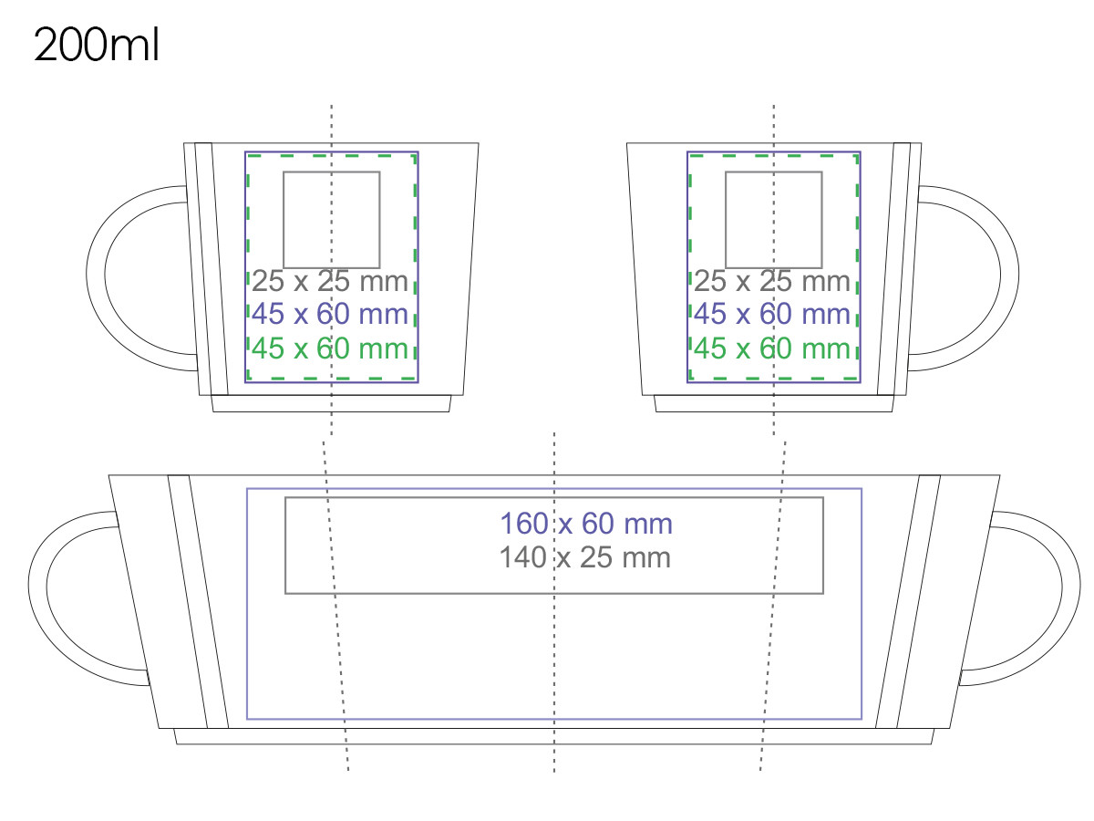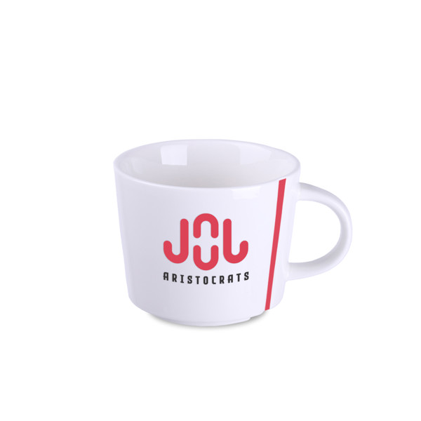 Popular and ergonomic model made of porcelain. It is distinguished by interesting embossing on both sides of the handle. It comes in three capacities. A style emphasizing the originality of the promoted brand.