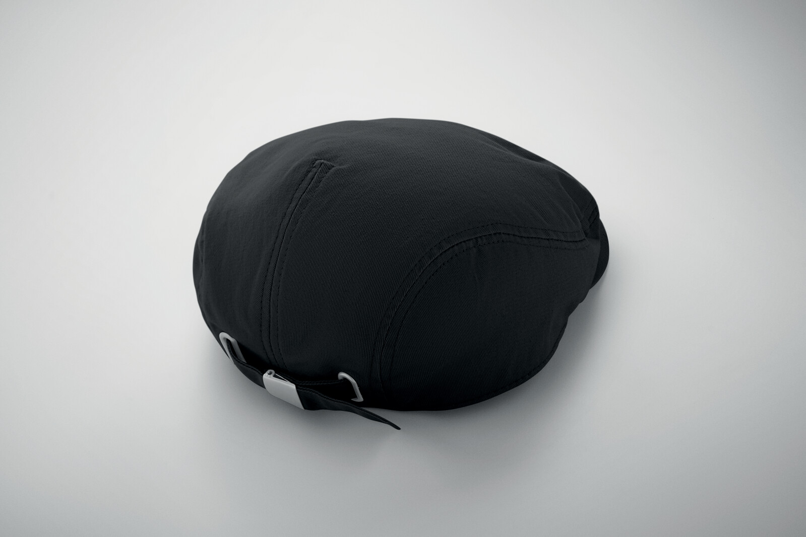 Newsboy flat cap in 235 gr/m² twill cotton with metal buckle closure.