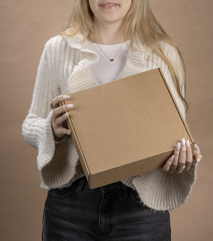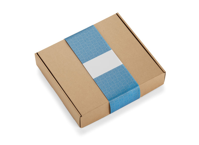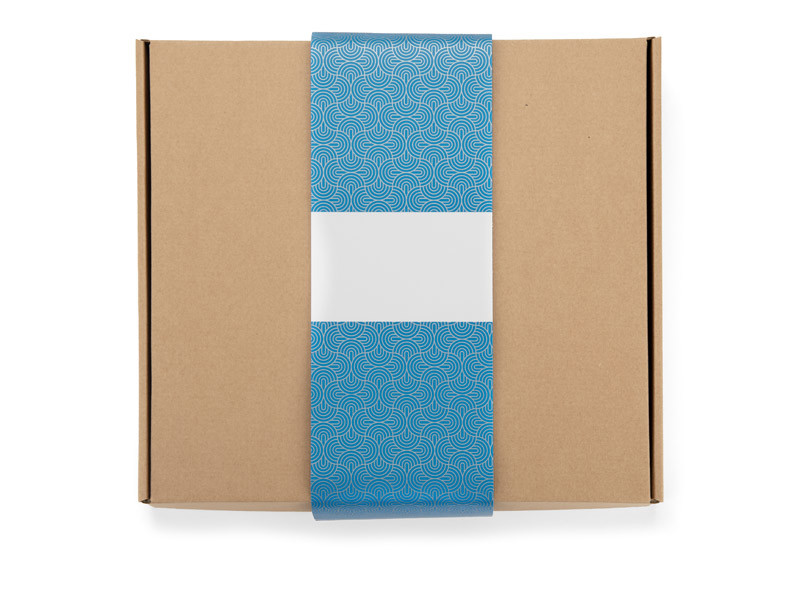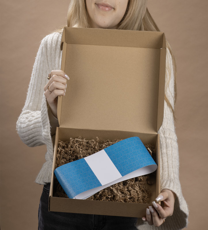 The AZUL "S" gift box set is a ready-made, elegant solution for creating corporate gifts. It includes a sturdy kraft cardboard box, beige paper filler (certified for food contact), and a blue wrap with a silver, custom-designed pattern created exclusively for BLUE COLLECTION. The wrap ensures an elegant finish and is easy to use thanks to its self-adhesive strip. The set is available in three sizes (S, M, L), making it easy to match with your planned contents.
