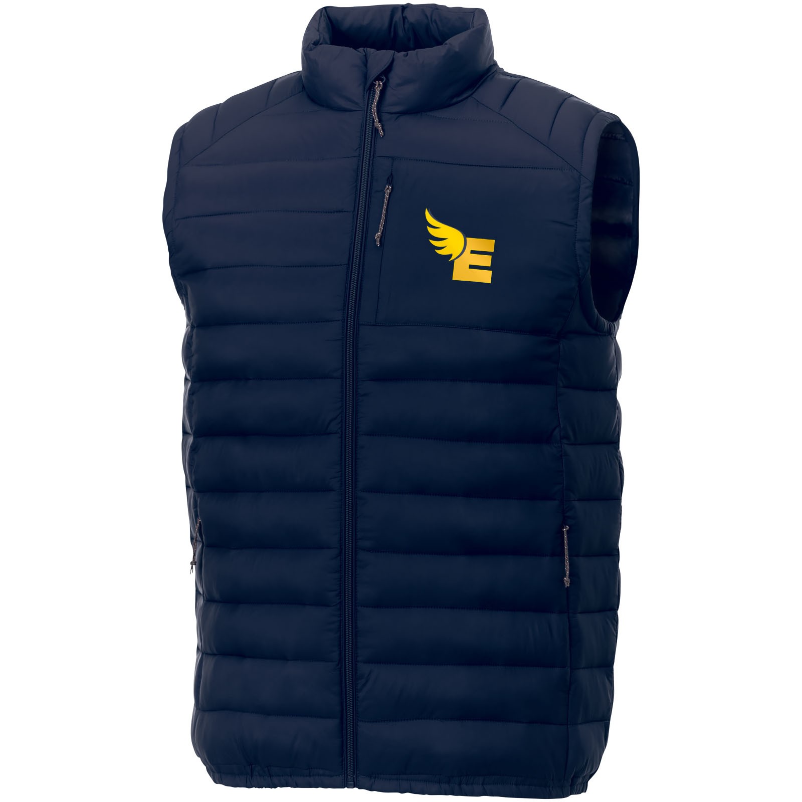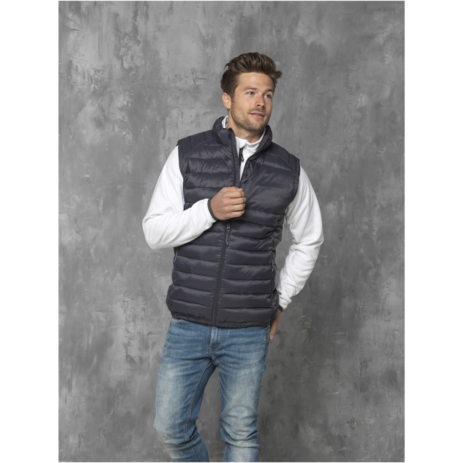 The Pallas men's insulated bodywarmer – a perfect blend of style and functionality. Stay protected from cold and wind with the inner stormflap featuring a chinguard. The bodywarmers's chest pocket with zipper closure provides a secure space for your essentials. The elasticated binding adds a stylish touch while ensuring a secure fit. Made of 38 g/m² of dull cire 380T nylon woven fabric, the bodywarmer offers a sleek and durable exterior. The padding and filling consist of fake down insulation made of polyester, providing lightweight warmth without compromising on comfort.