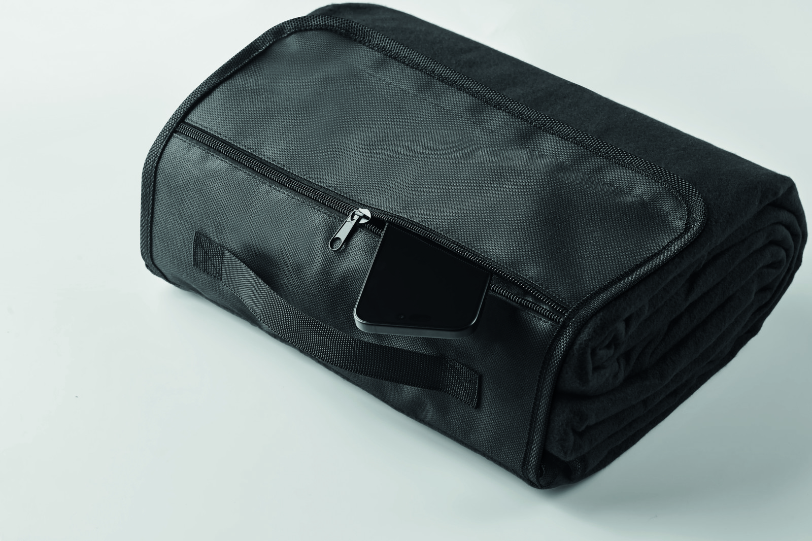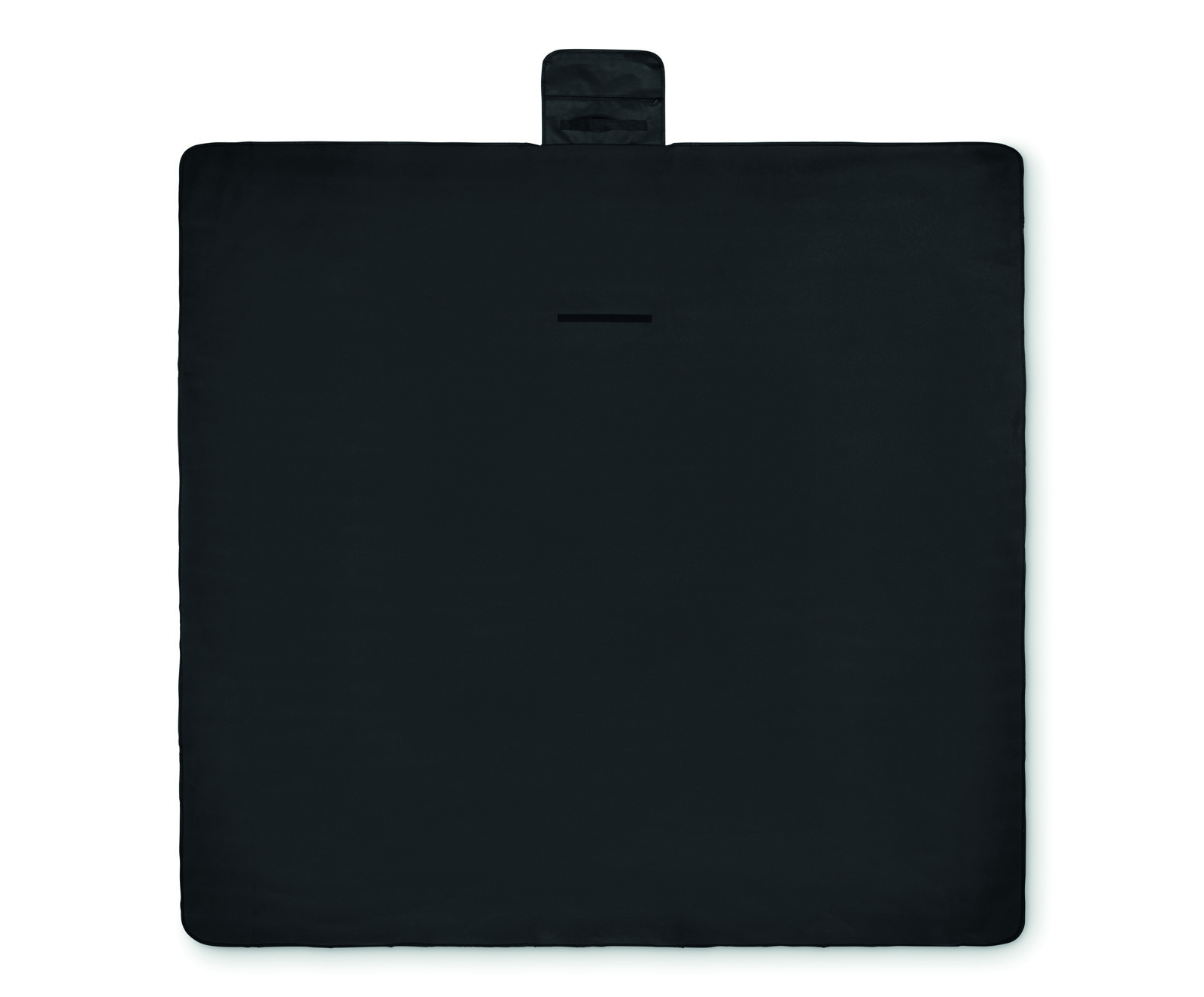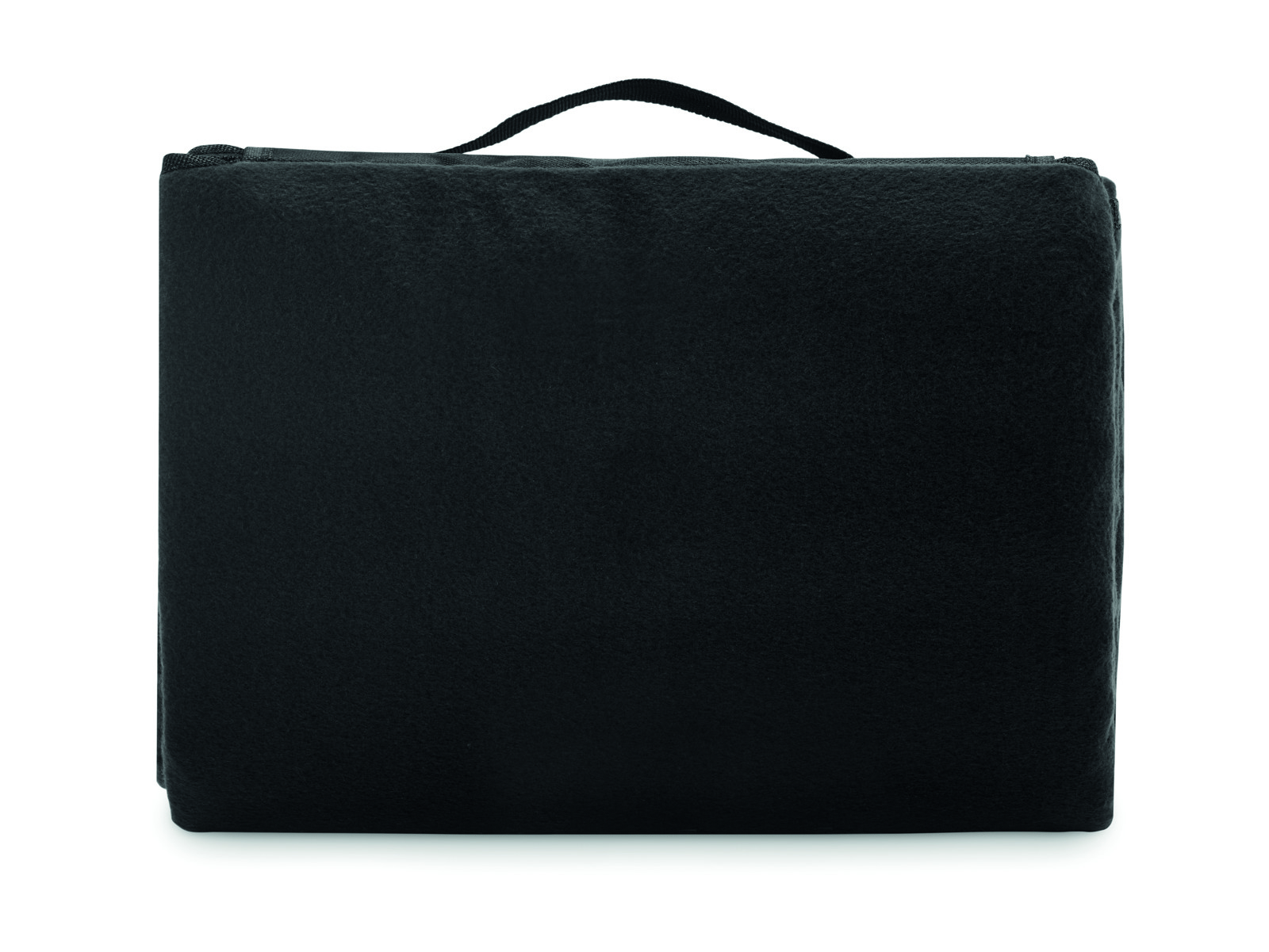 Foldable RPET 150 gr/m² (68% recycled polyester/32% regular polyester) polar fleece picnic blanket with water resistant coated PEVA reverse side. Front flap with zippered pocket and handle.