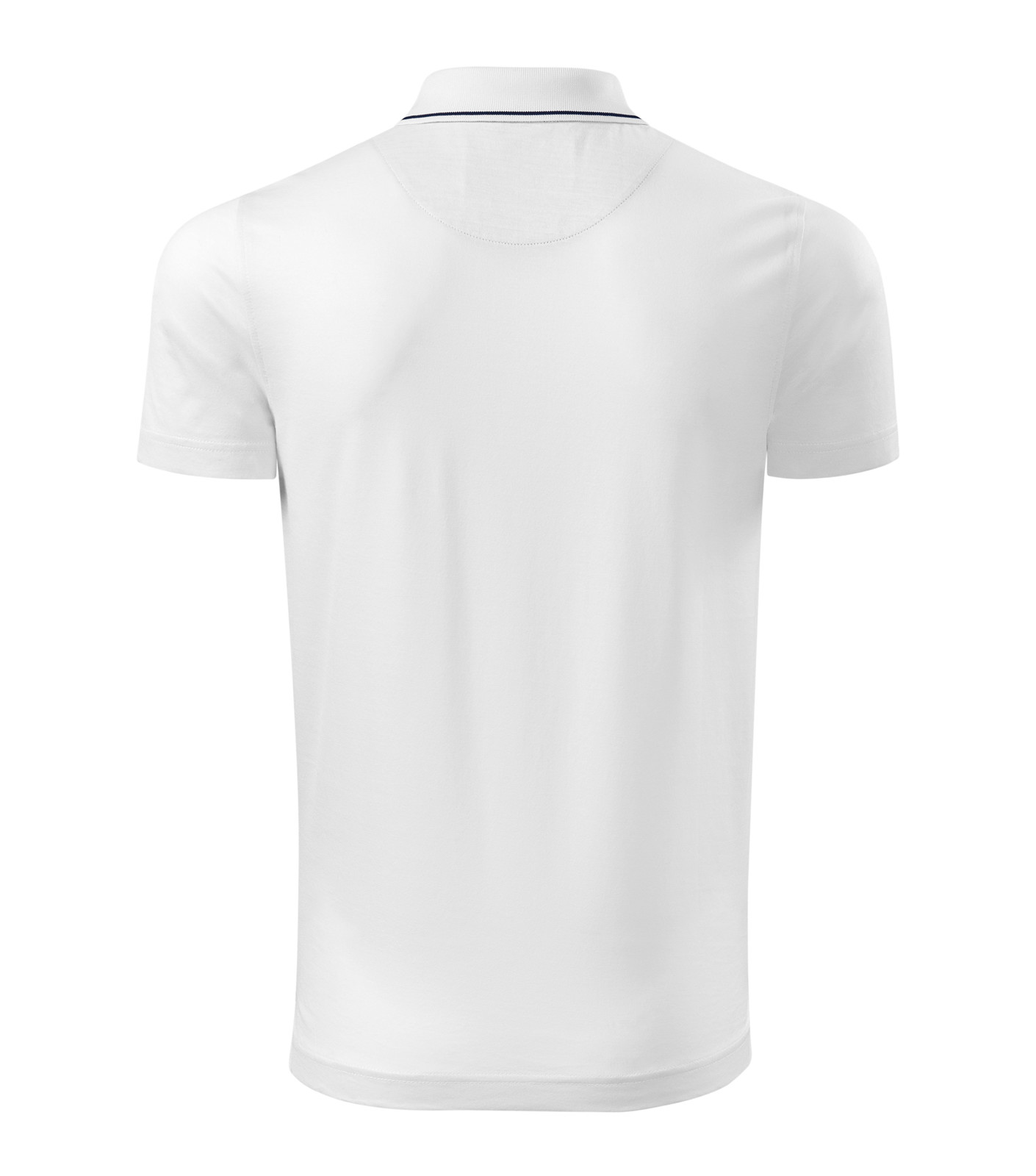 Cut with side seams, 1:1 rib knit collar with a contrast stripe, placket with 3 buttons in the shell fabric colour, slits in side seams with a contrast tape, inner neckline with a contrast tape, fixing shoulder seams, cotton treated by mercerization