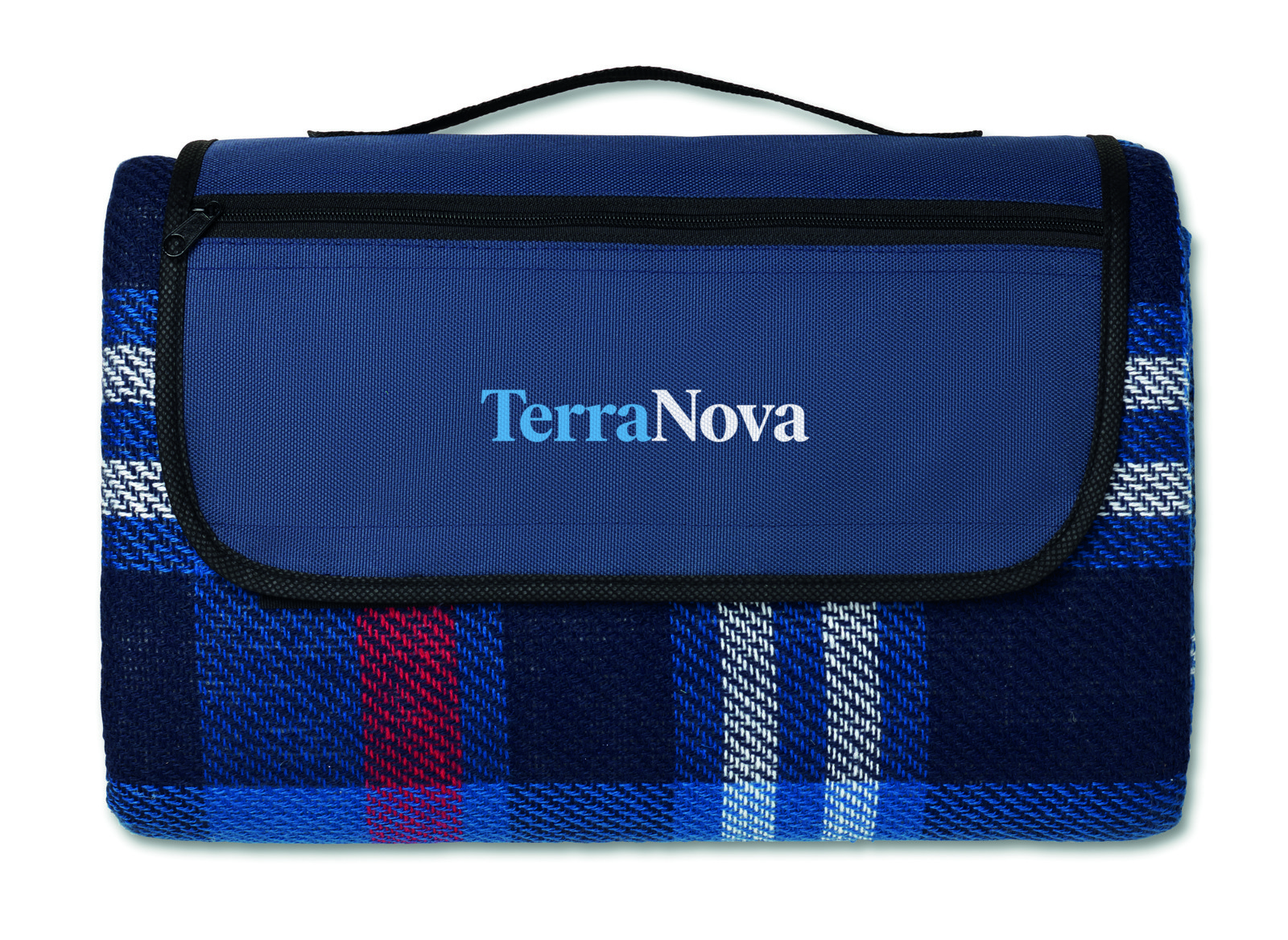 Foldable acrylic picnic blanket with water resistant coated EPE reverse side.
