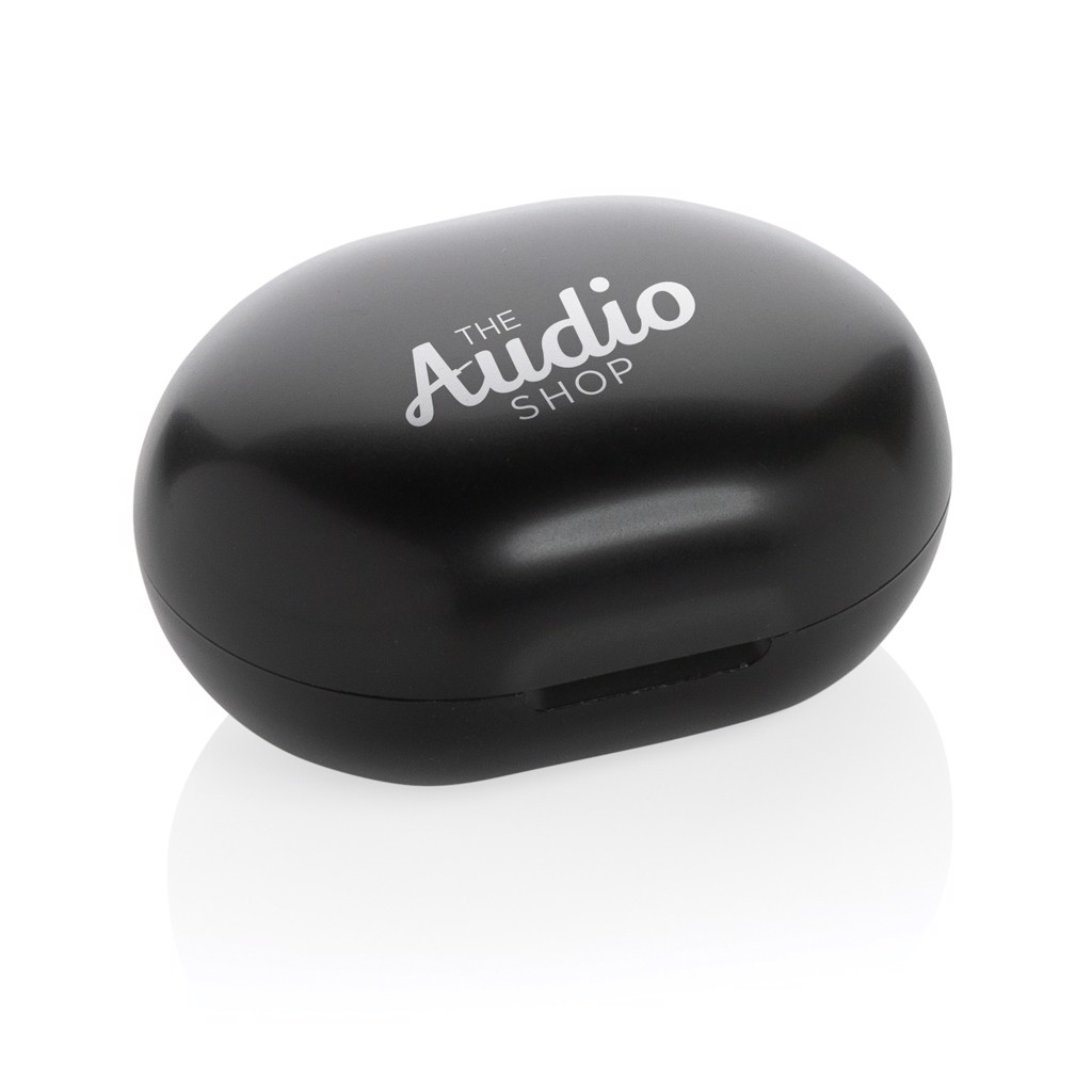 TWS earbuds where the the earbud and the charging case are made out of RCS certified recycled ABS plastic. RCS (Recycled Claim Standard) is a standard to verify the recycled content of a product throughout the whole supply chain. RCS is the standard that is used when a part of the item has been made from recycled materials. The wireless headphone uses BT 5.0 for super smooth connection and long lasting play-time. The 40 mah battery allows a play time up to 4 hours and can be fully re-charged in the 300 mah charging case in 1,5 hours. Operating distance up to 10 metres. With mic and touch pick up function. Item and accessories PVC free. Including PVC free recycled TPE material charging cable.