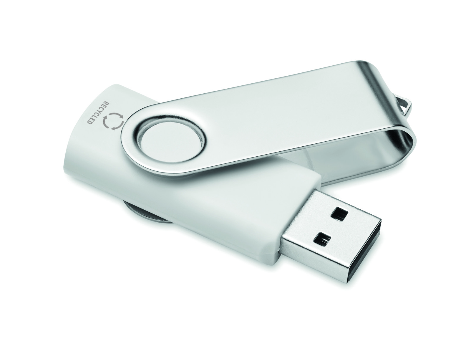 16GB USB 2.0 Flash Drive with protective recycled ABS casing. Rotate the metal cover and connect to USB port to start using it.