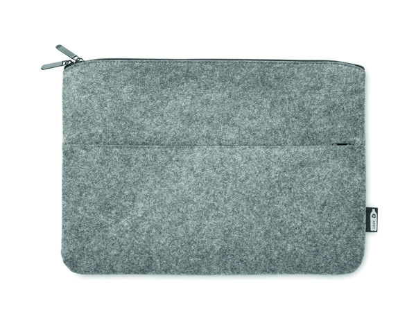 RPET felt 14 inch zippered laptop bag with zippered front pocket.