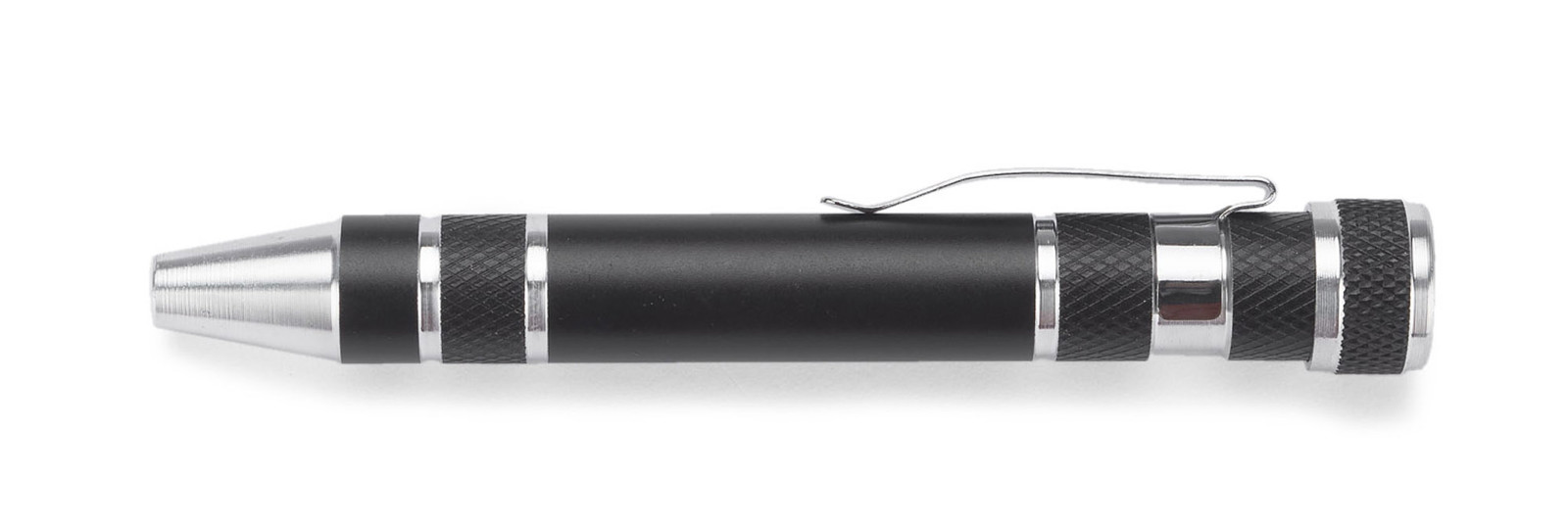 Screwdrivers set which contains 8 different endings. Clip enables to hang it to the pocket. Screwdrivers endings are mounted with magnet. Logo can be engraved on the surface.
