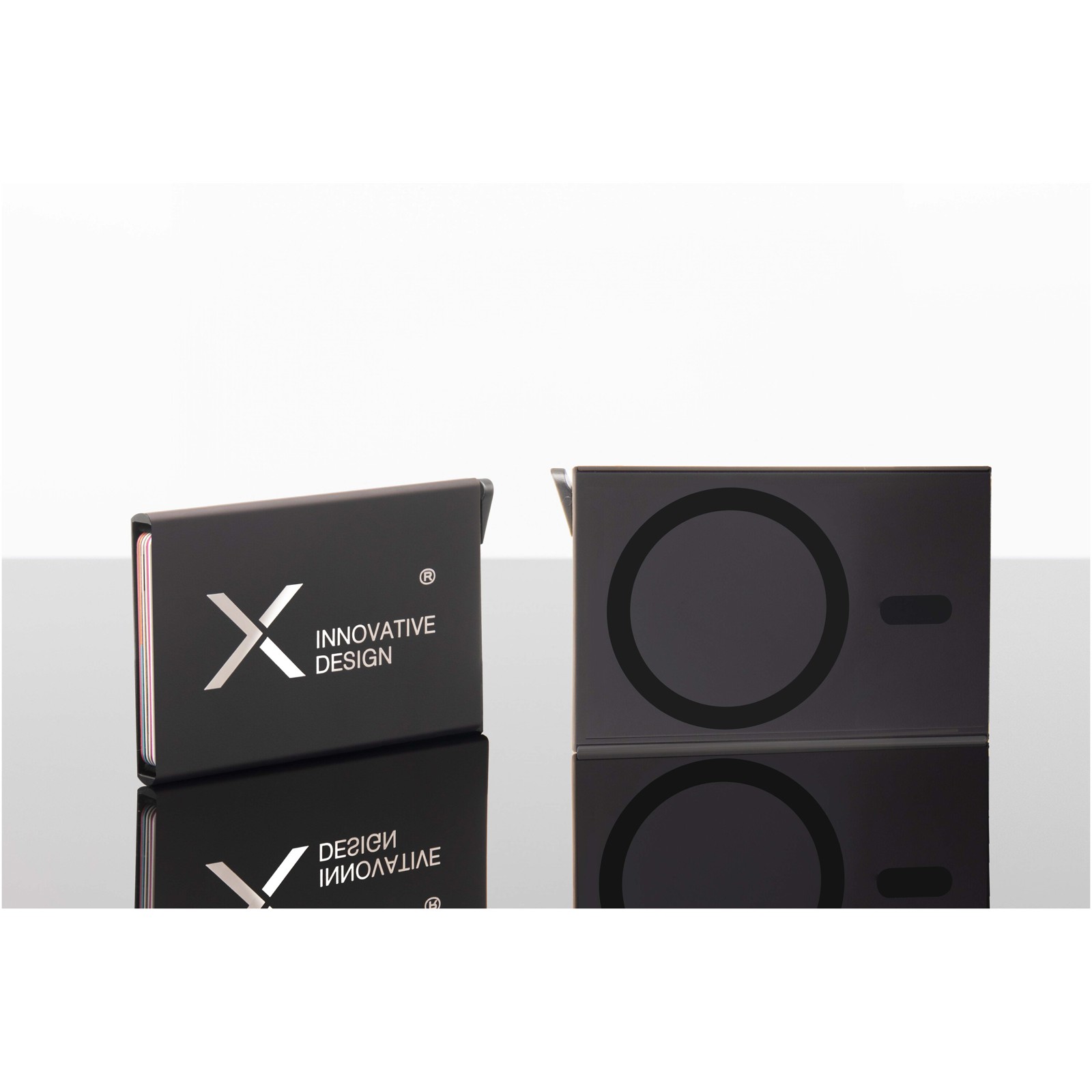Sleek magnetic aluminium RFID card holder that securely holds up to 6 cards, featuring a manual push system for easy access. Customisable laser engraved logo. MagSafe compatible, and if your phone does not have this technology, the included magnetic ring can be used. Delivered in a recycled cardboard gift box. Card holder size: 6 x 9.5 x 1 cm.