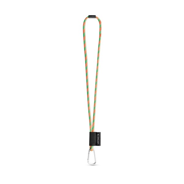Custom Lanyard long tube in polyamide with 17 standard colours available for customisation. Includes the following accessories and extras: black coloured elastic, 43 x 22 mm sublimation label, 55 mm metal hook and ø6 mm safety lock. ø7 x 470 mm