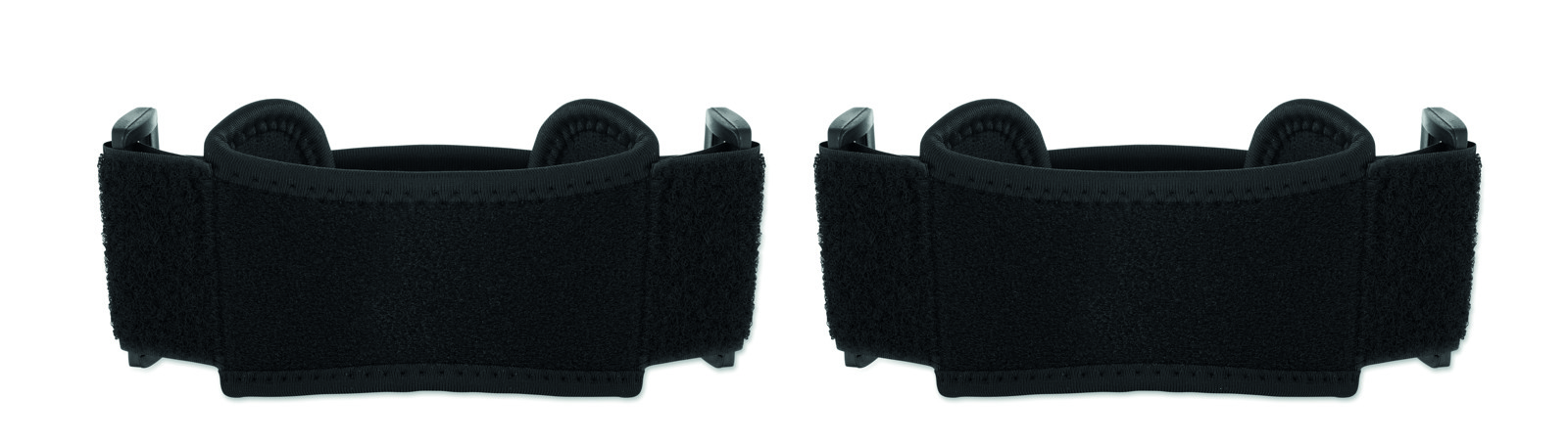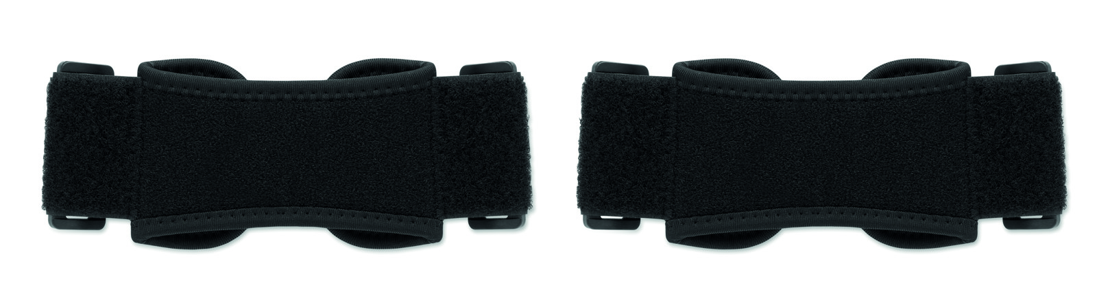 Set of 2 sports knee supports made of fabric laminated with chloroprene rubber and terry cloth backing. Soft, flexible, and supportive for active use.