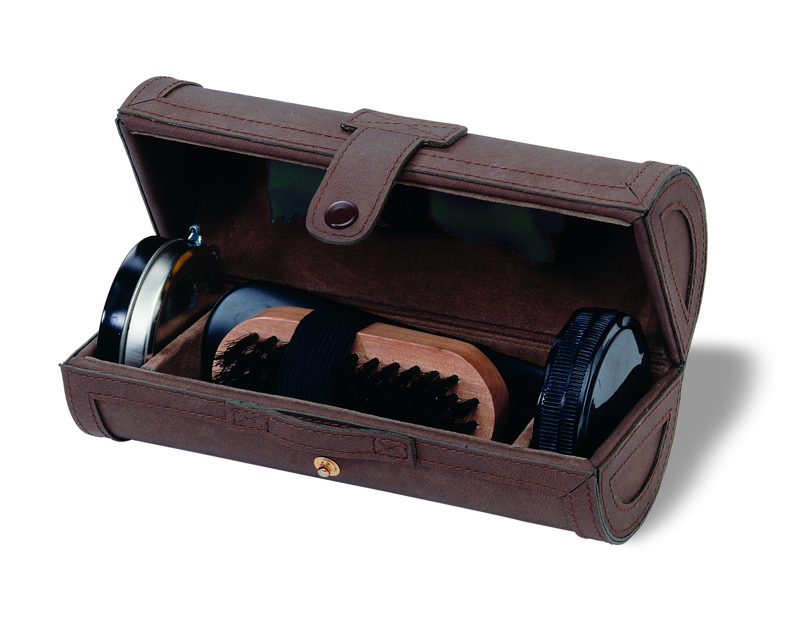 5 pieces luxurious shoe polish kit in gift box. This set includes a black shoe cloth, a black shoe horn, a wooden shoe brush, a shoe shine spongy and polish in a neutral colour.