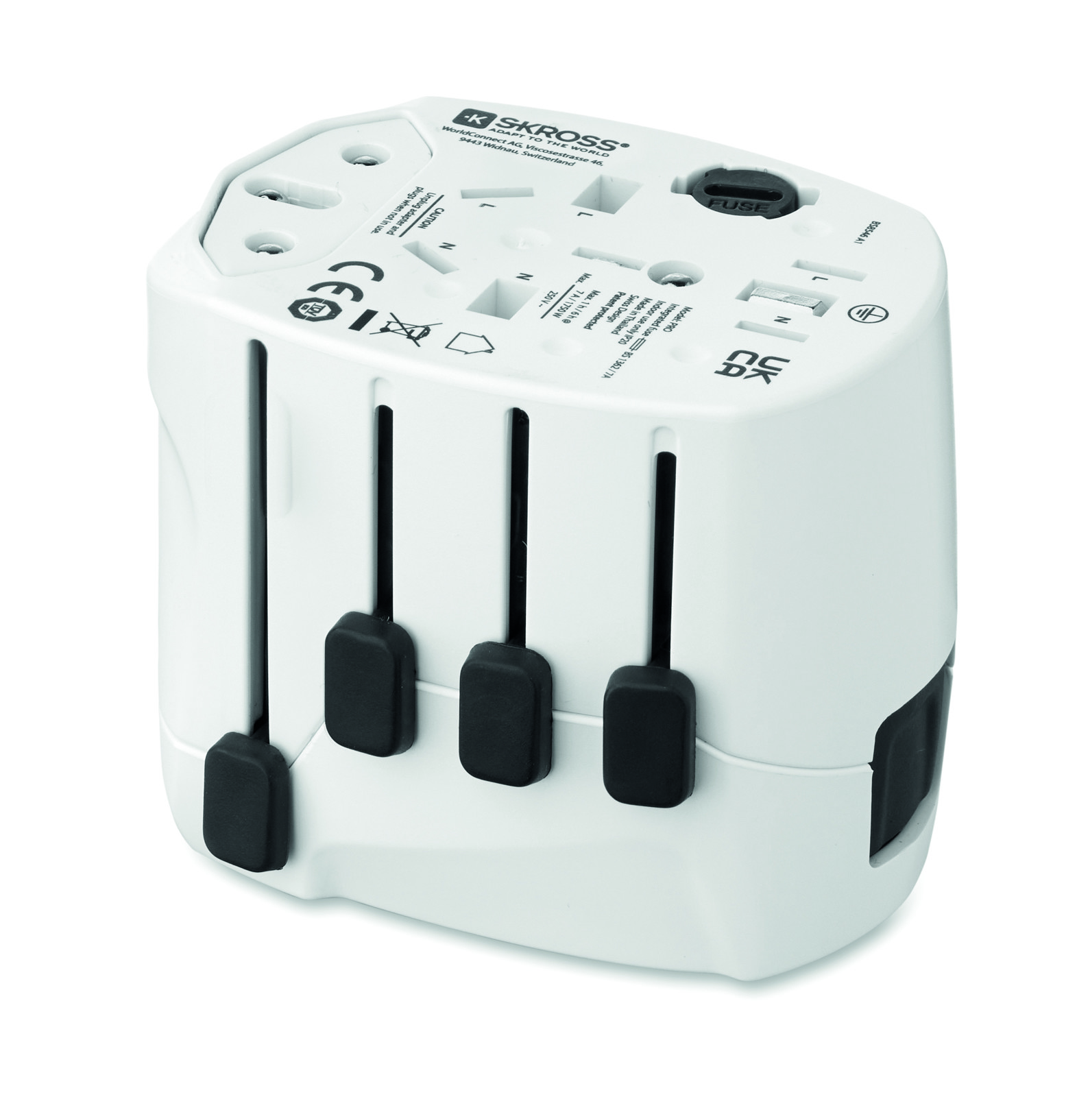 SKROSS® PRO — universal 3-pole travel adapter for Europe, USA/Japan, Australia, and China. Grounded for extra safety.