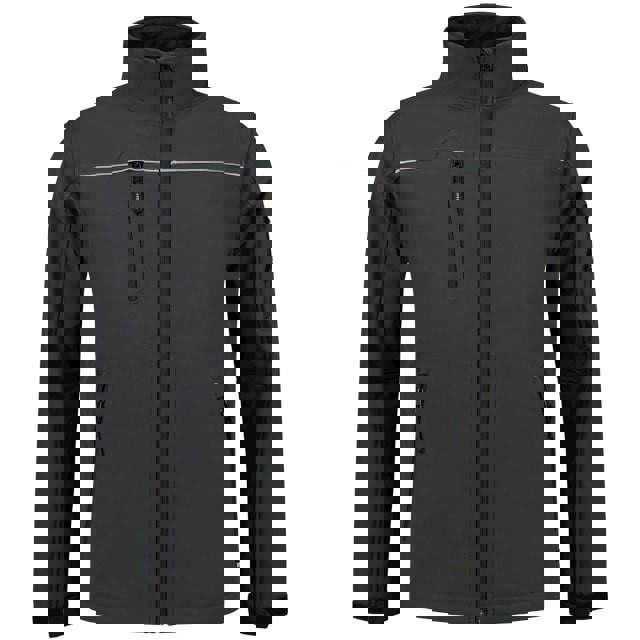3-layer softshell with membrane, waterproof, windproof and breathable fabric, straight cut with side seams, full-length reverse coil zipper with chin protection, sleeve hems adjustable by velcro, bottom hem adjustable by elastic drawstring, pockets with reverse coil zipper, breast pocket, sleeve pocket, reflective elements, Tricorp item number: 402006, AVAILABLE ON REQUEST TO OUR SALES DEPARTMENT
